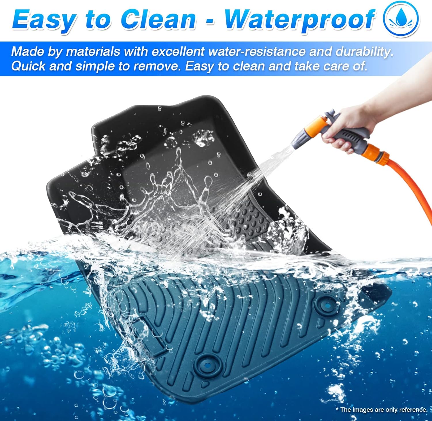 - All Weather Protect & Cleaning -- The carpet cover are waterproof, and the groove design forming channels to collect water, mud, snow, debris, ect, to avoid accidental skidding and stain to original car carpets. Easy to clean by rinsing it with water, and dry with towel.