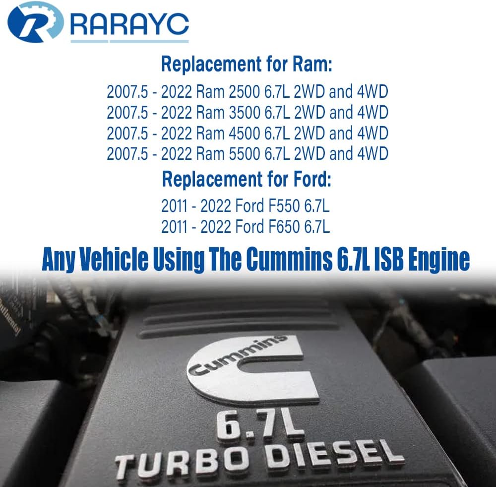 - [Compatibility] Fits the majority of 6.7L Cummins engines on 2007 and later models, including 2007.5 Ram 2500, 3500, 4500, 5500, and 2011-2022 Ford F550, 650. Additional information is provided in the product description located below.