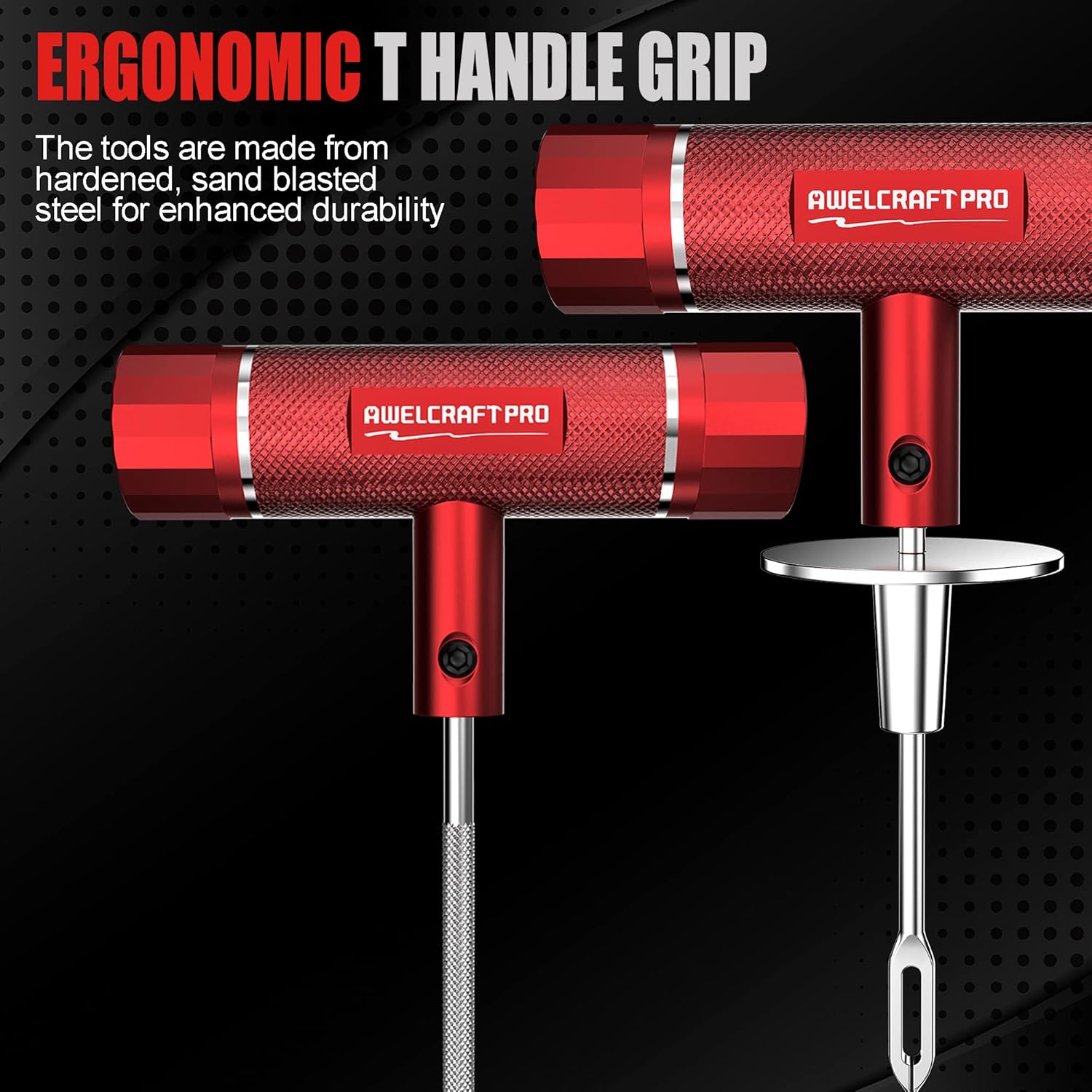 • AWELCRAFT tire repair kit is a portable and practical kit in your car or garage. All goods are packed in a durable case. This portable case provides quick access, well organization and easy carry.