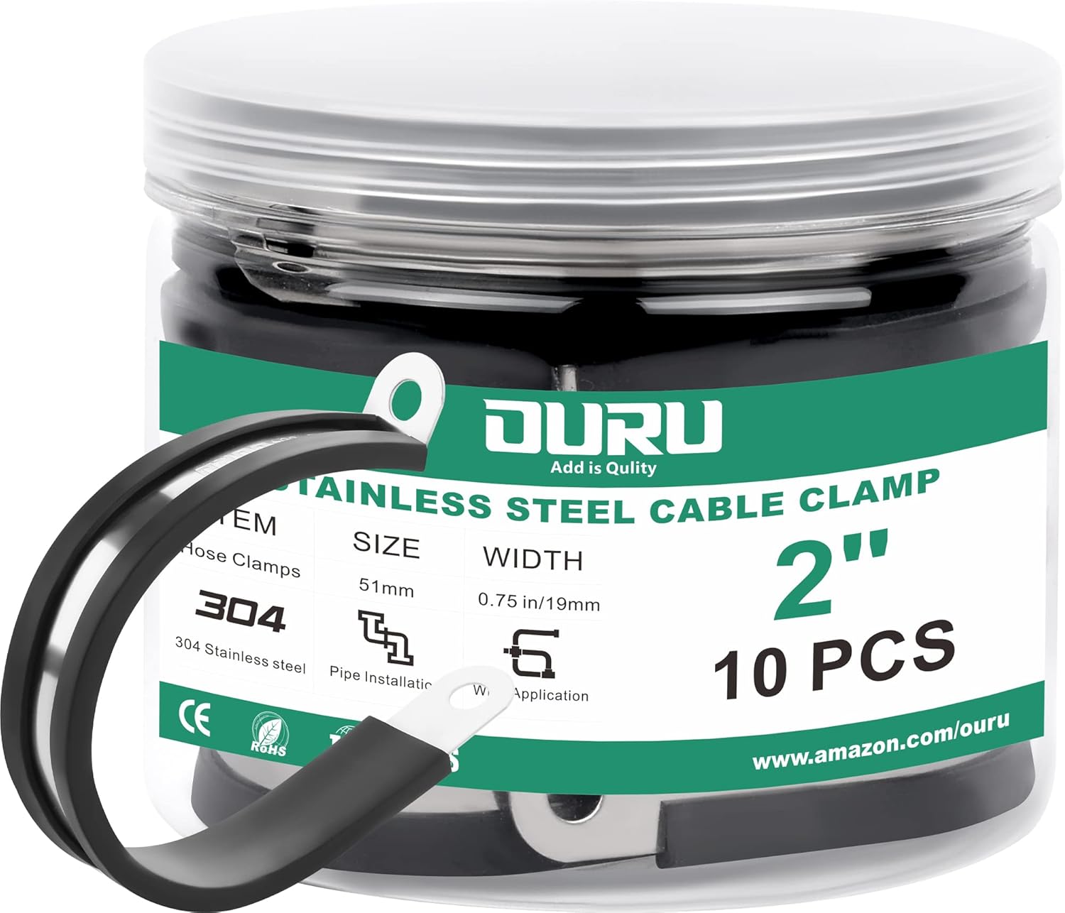 - OURU Insulated Cable Clamps Kit βThe stainless steel hose cable clamps box set contains 10pcs 2" p-clamps.Fit for 6M( 1/4 inch) screw bolt to through the screw hole