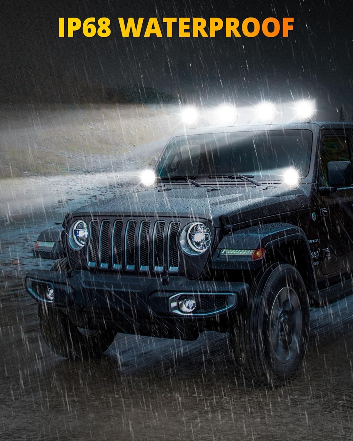 - [EASY INSTALLATION & WIDE APPLICATIONS] - Our led round work lights are very suitable for people who like DIY. Led shooter lights coming with necessary accessories can easy set up to any mounting holes. The LED light pod is suitable for all kinds of 10V-30V, Off Road, Truck, SUV, ATV, UTV, Car, Tractor, Boat, Motorcycle, Construction Light, etc.