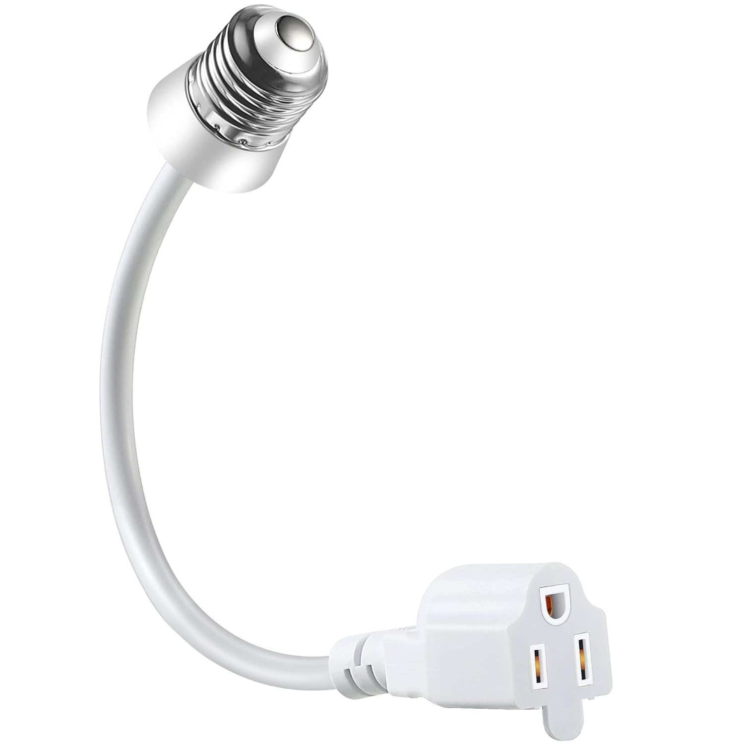 Feekoon 1 Pack 3 Outlet Light Socket Adapter, Convert E26/E27 Bulb Socket to 3 Prong Outlet with Extension Cord, Light Bulb Plug Adapter Converter Suitable for Outdoor Porch Garage Patio Use (White)