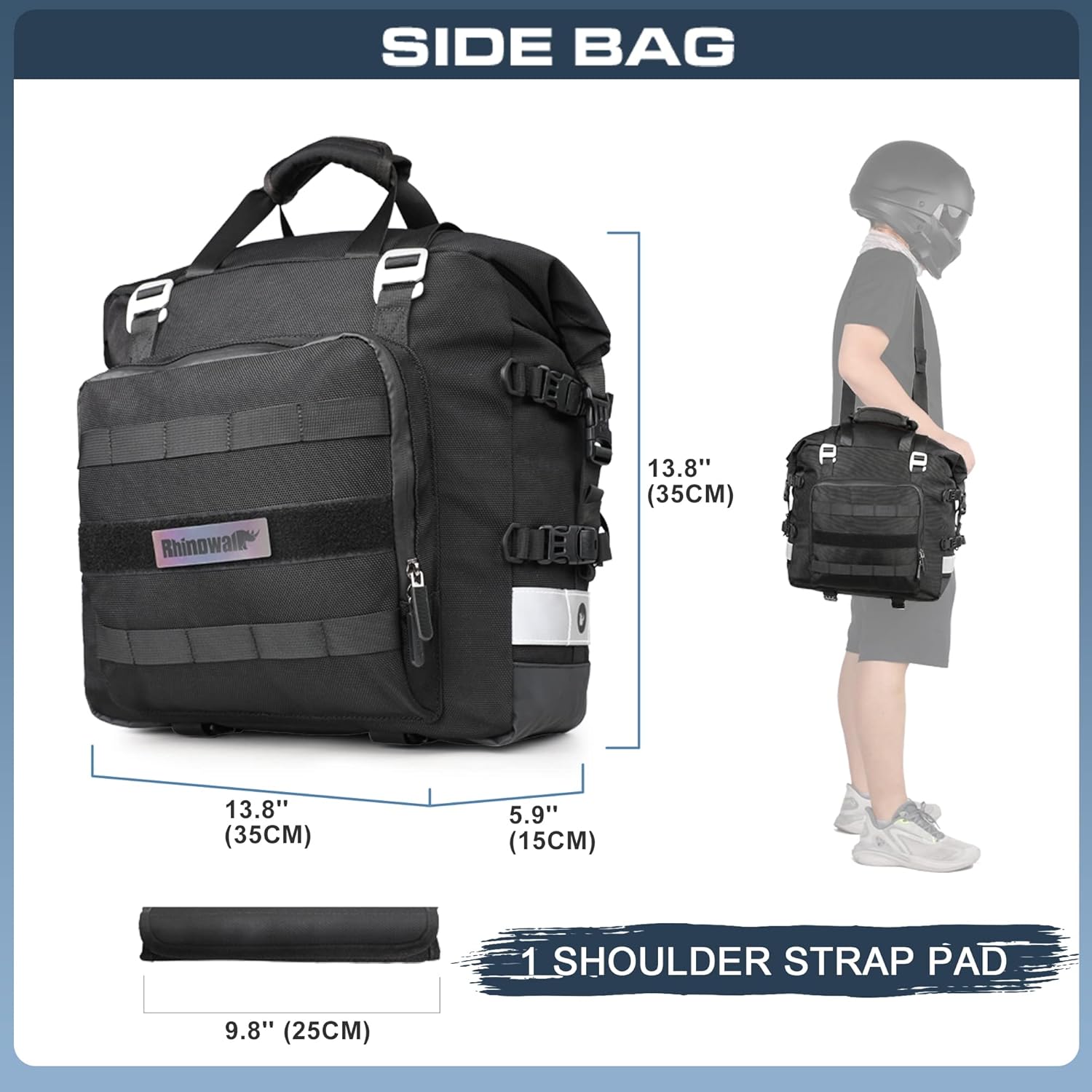 Rhinowalk Waterproof Motorcycle Saddlebags Luggage Bags 20L Quick Release for Adventure & Sport Bikes, Black (1 Pack)