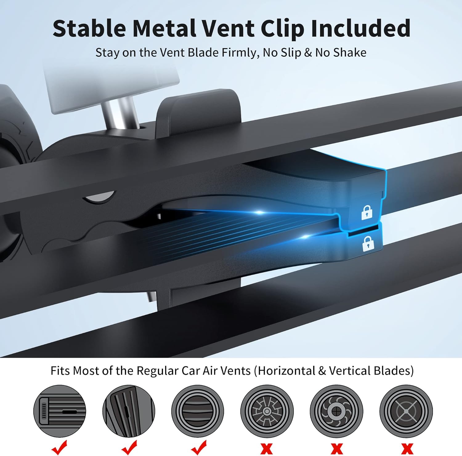 PROfezzion Suction Cup & Vent Clip Combo Magnetic Phone Holder Compatible with MagSafe on Car Dash, Windshield or Vent for iPhone 16 15 14 13 Pro Max Plus, Mag-Safe Case & All Phones [Telescopic Arm]
