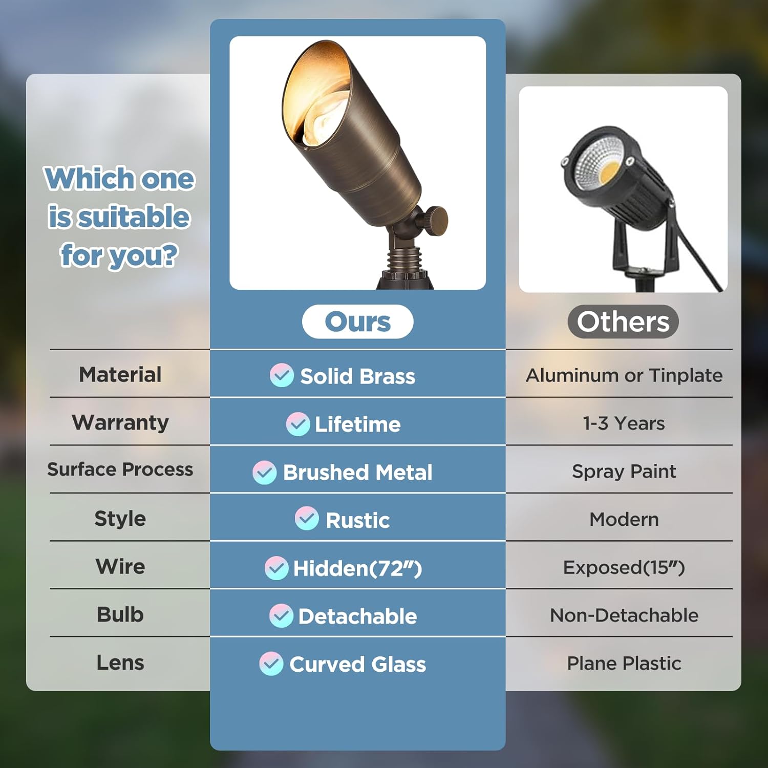 - LONGER LIFESPAN: The separate bulb and fixture design has a longer life than a non-separable set LED, without having to abandon the entire fixture because of a broken bulb. Gardencoin offers the industry's best lifetime warranty on its brass fixtures, and we look forward to receiving your feedback, so please feel free to contact us with any quality issues