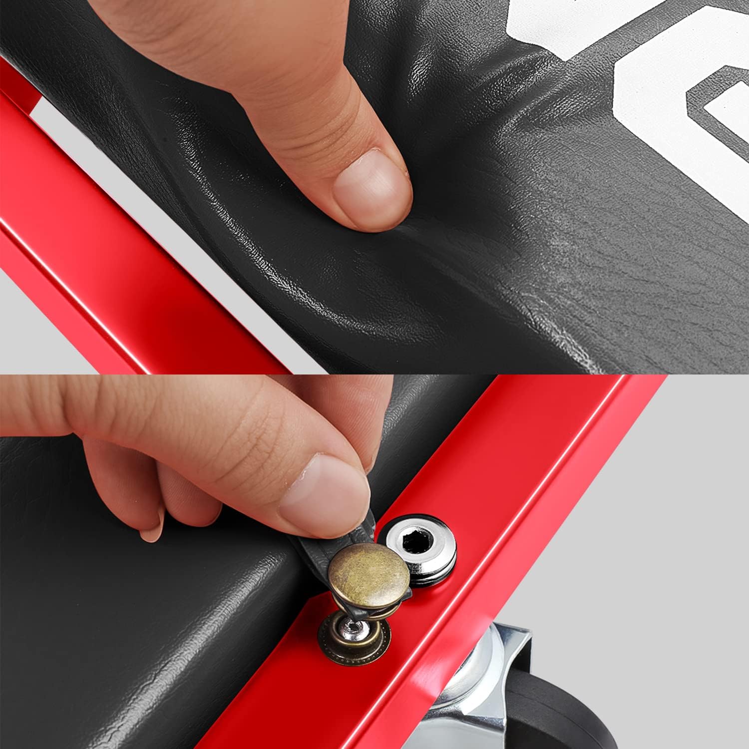 - ADVANCED DESIGN - This roller garage/shop creeper with thick padded seat cushion will provide stability and comfort on the job. Unique design allows creeper to transform from a standard rolling creeper into a seat in seconds.