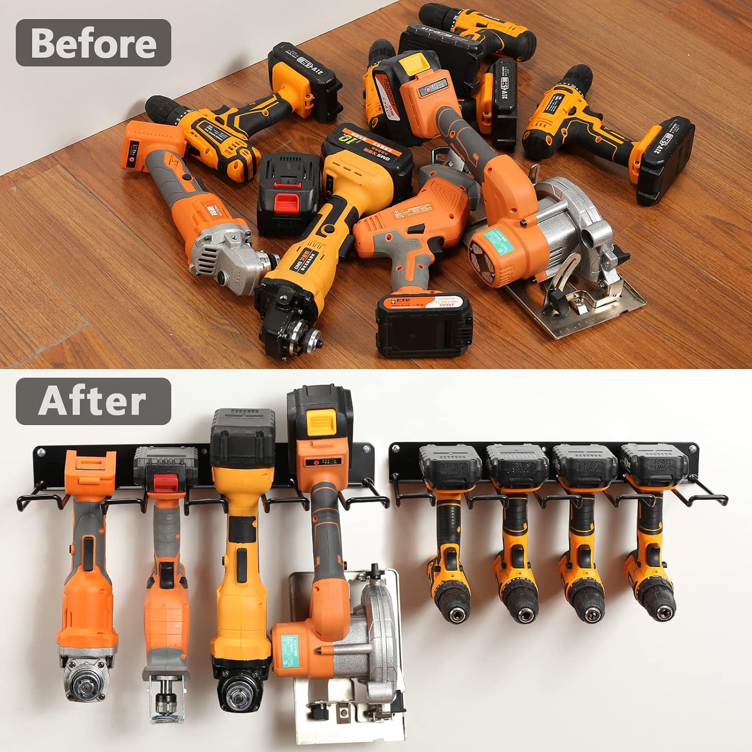- Compact Storage: The 2 pack set of drill holder racks provides compact storage for your power tools.