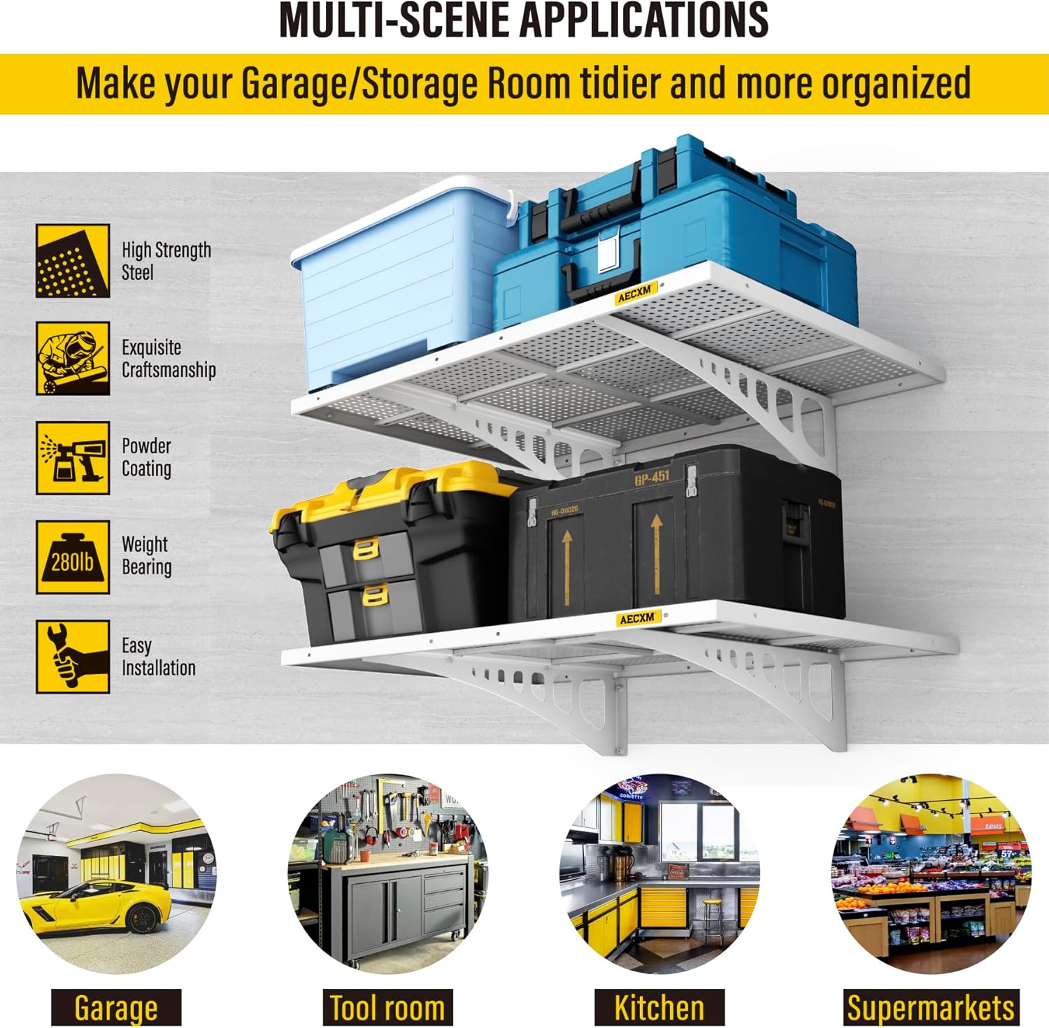• Easy Installation: Includes high-quality screws and a detailed instruction manual, allowing one person to effortlessly complete the setup. This 2x3 garage shelf wall mount offers ample storage space for your garage, kitchen, or pantry, keeping everything organized and within reach