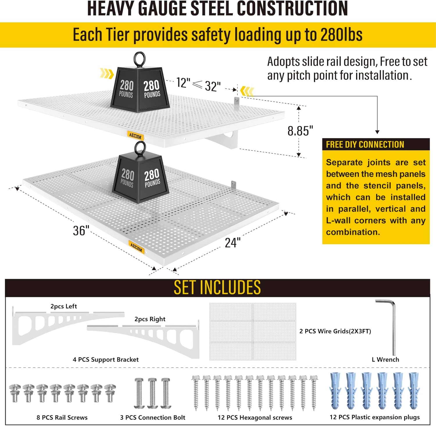 • Premium Craftsmanship: This garage wall shelving is crafted from a single steel sheet, precision-stamped and folded for strength. Unique high-density hole design enhances functionality while delivering a sleek, modern aesthetic