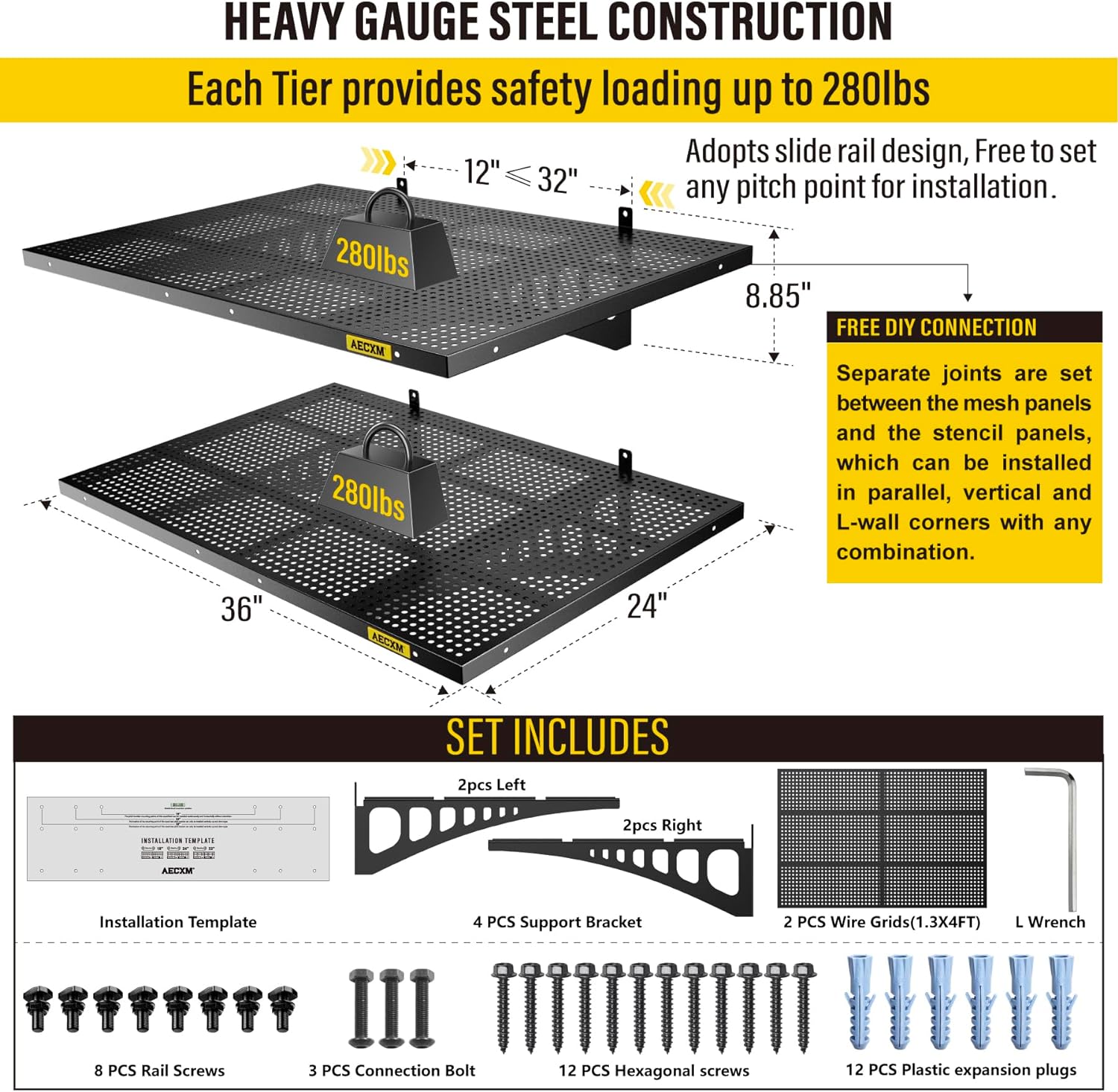 - Customer Support: AECXM offers comprehensive after-sales service. If you have any questions, feel free to contact our teamβweβll assist you promptly. (Note: For installation on brick or concrete walls, use expansion anchors to securely fasten the heavy duty shelving after drilling.)