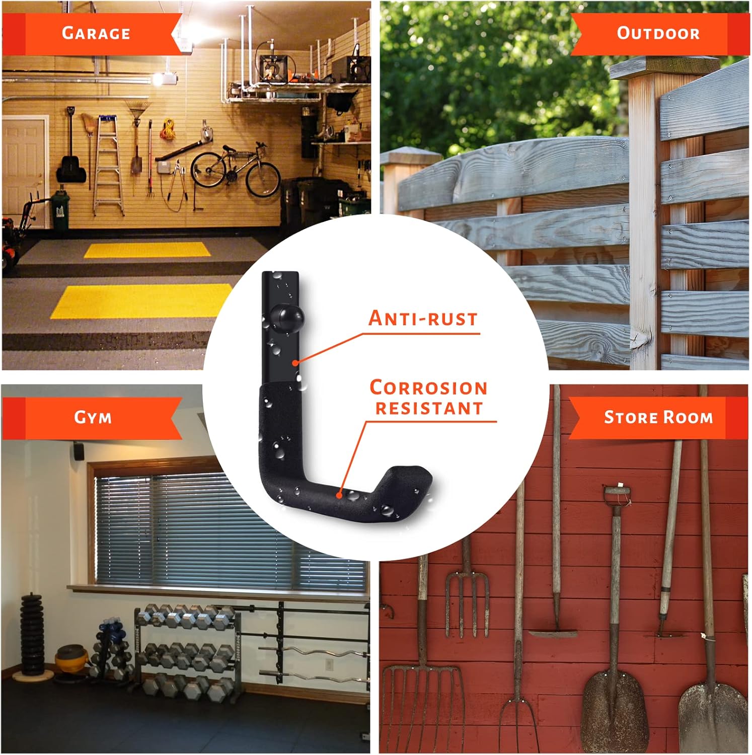 - ▶【STRONG & SECURE】Garage hooks is made of heavy-duty steel. Simple J-shape & no-weld is suitable for securely holding all types of items. 88 lbs(40kg) safe working load.