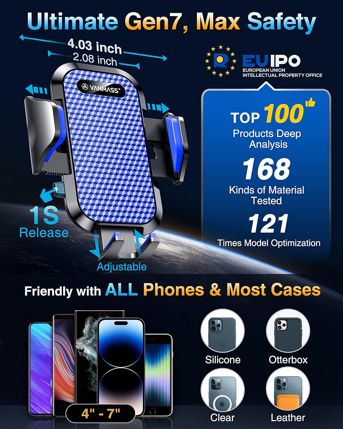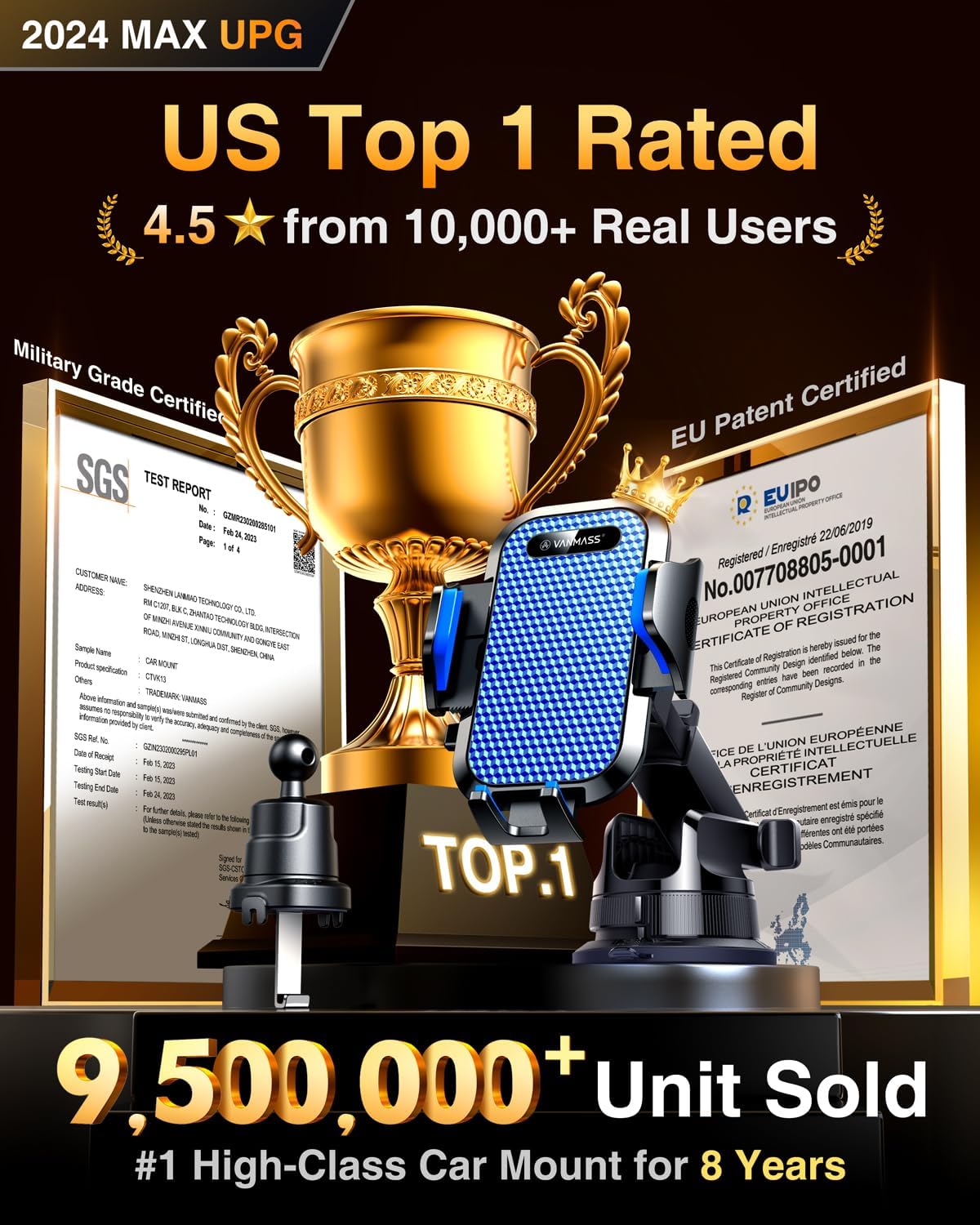 - ăTrue Military-Grade Certified, 2024 Ultimate Car MountăVANMASS, the leader in high-end car phone holder. Over the past 8 years, We have listened to the voices of millions of users, rigorously tested to MILITARY GRADE standards (stability, compatibility, flexibility, security, durability). Finally, we overcome all weaknesses to design the Ultimate Model that we are most satisfied with. This item obtained international military-grade shockproof certification No. GZMR220601855501