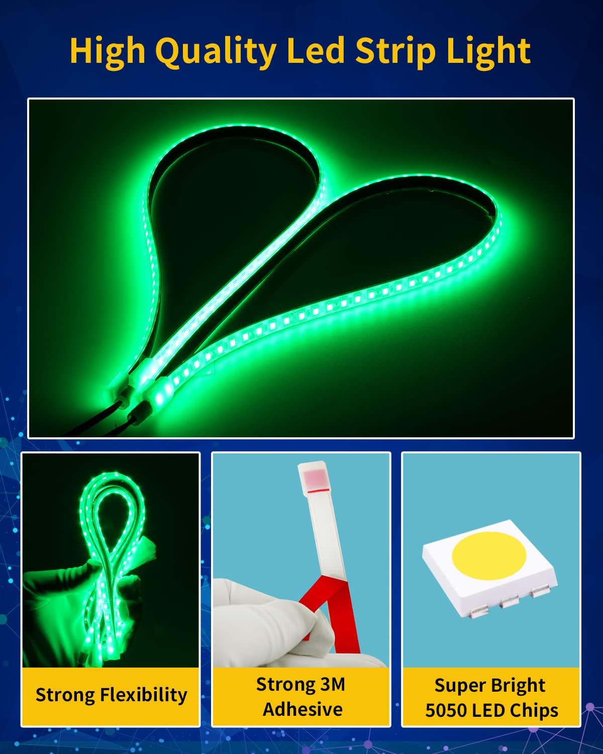 Green Led Strip Lights,24inch 12V Interior Light Strip IP68 Waterproof Cuttable for Car Motorcycles Boat Golf Cart Truck Cargo Home Decoration with Strong Nano Tape(4PCS)