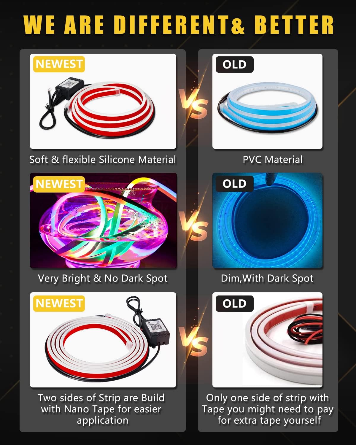 - ă16 Million ColorsăThe Car Hood led strip light has 16 million colors,you can choose or DIY your dream color.Made of soft silicone with heavy duty Nano Tapes on both sides,Super Bright.