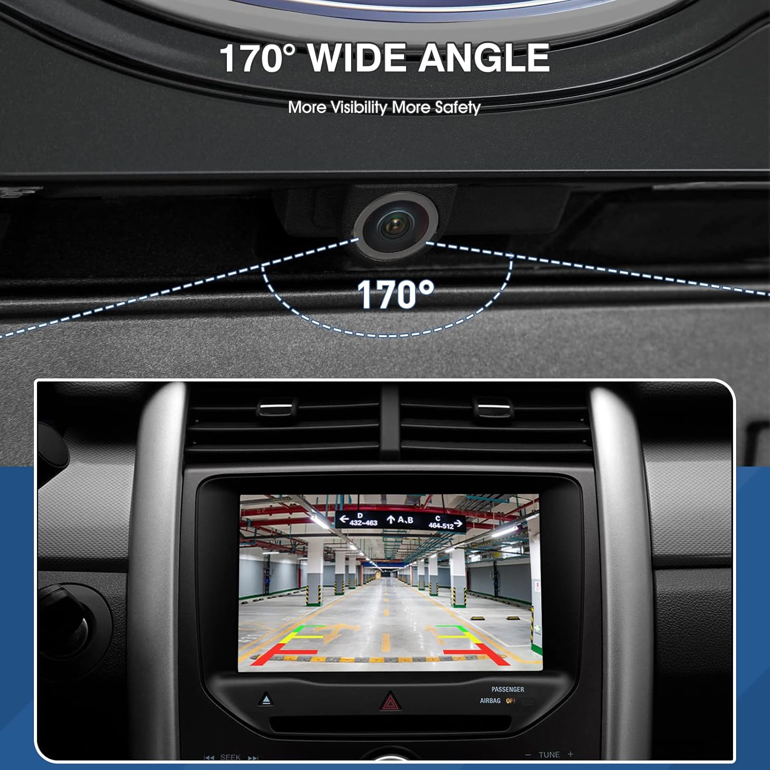 - [Clear Day and Night]: Edge Reversing Parking Assist Camera made of high quality material and lens, support 170° wide vision and provides the driver with a clear and accurate color reproduction whenever in the day or night.