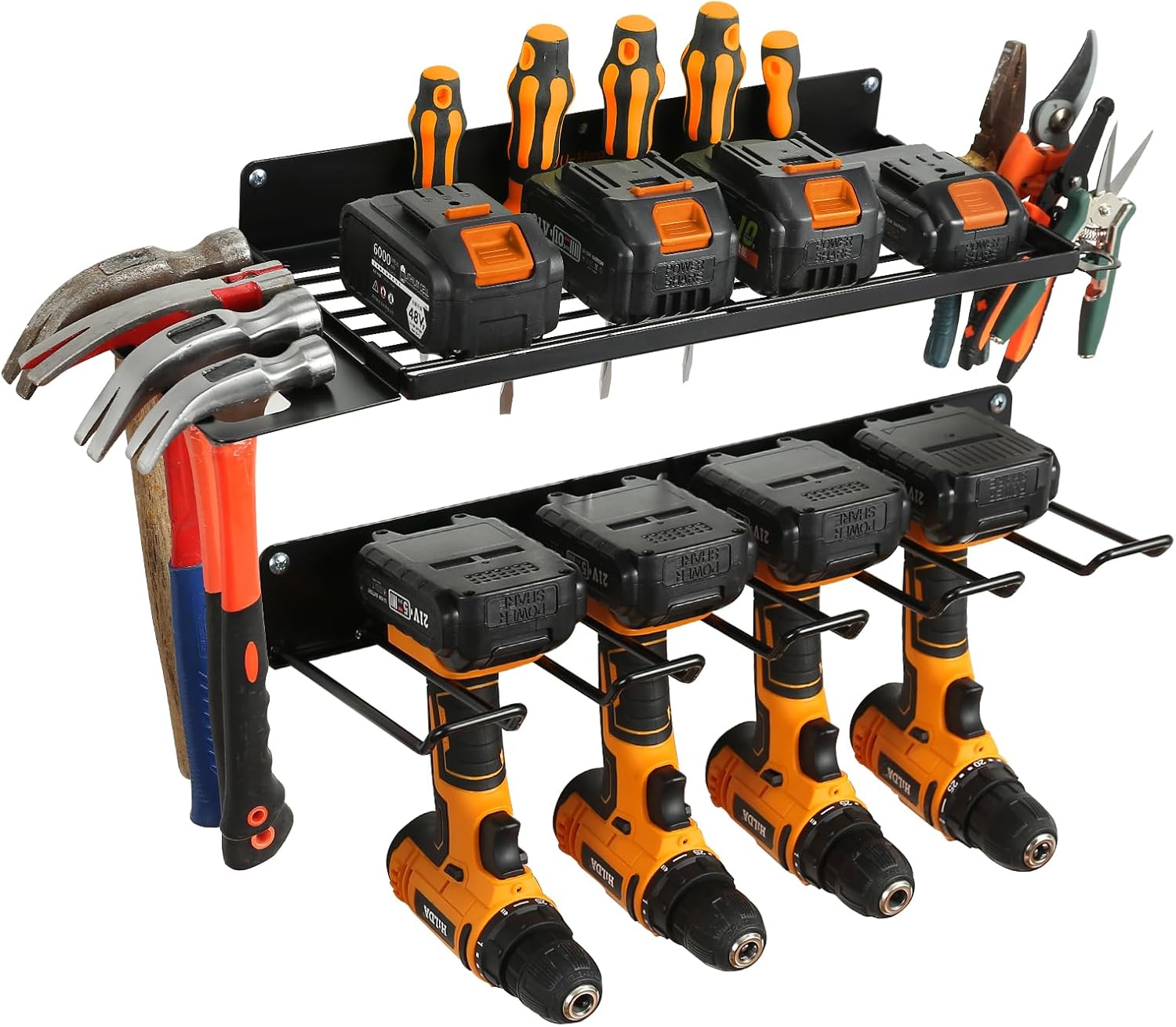 Power Tool Organizer for Garage Organization,Drill Holder Wall Mount for Tool Stoarge, Tool Organizers and Garage Storage Shelves for Charging.Heavy Duty With 4 Holders