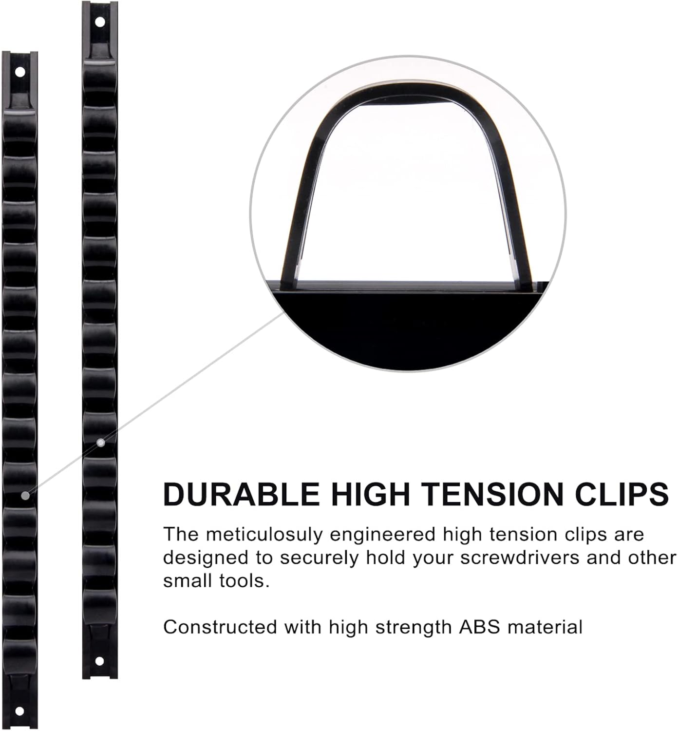 - The clips on the holder are specially designed to hold a multitude of different sized screwdrivers or wrench, and even some small tools. Clever tensioning system will securely hold your tools without risk of falling out.