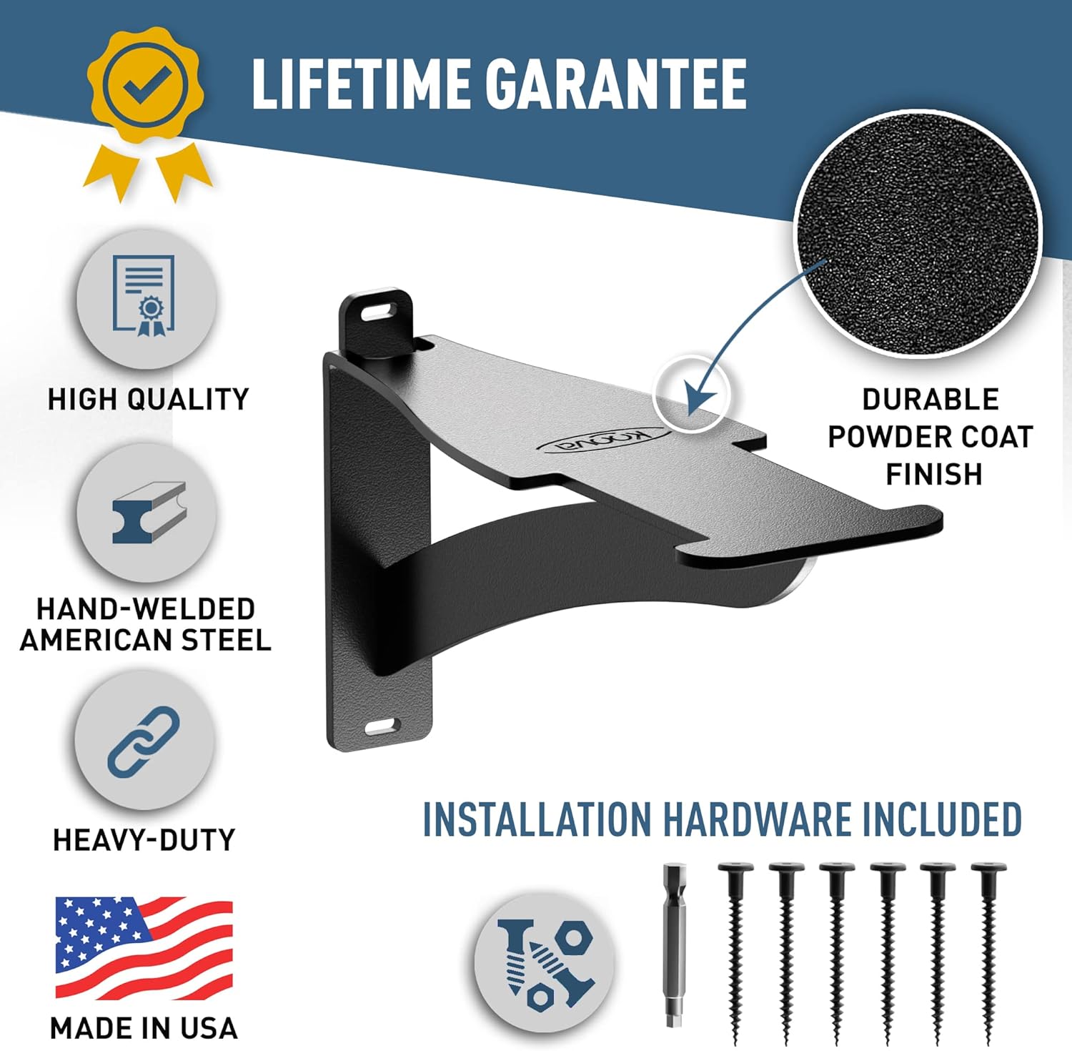 Koova Wall Mounted Tote Rack Storage System, Fits 27-Gallon Black and Yellow Commander Style Bins, Wall Mount Bracket Shelves for Garage Organization, Heavy Duty Steel, Made in USA (2-Piece Set)