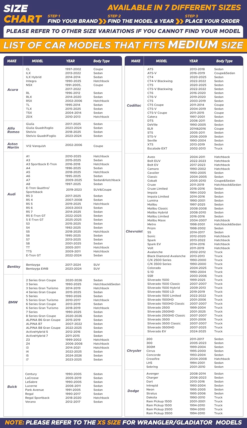 - Snug Fit for Small Vehicles: Measuring 59 inches in length and 29 inches in width, this sun shade for car window fits most small sedans, coupes, hatchbacks, and sports models. It works perfectly as a front window sun shade for car and offers a tailored fit for compact vehicles.