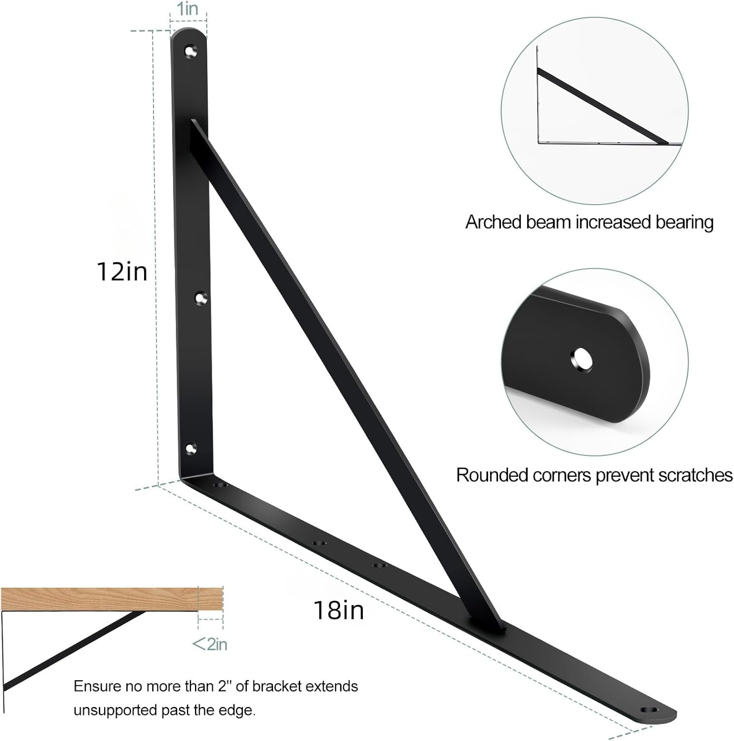 - Heavy Duty design, maxium support weight of 240lb for a pair of this shelf bracket. Designed to support 18 inches to 22 inches deep shelf. Matte black powder coat finish. resistant to corrosion and rust, durable. Creating a rustic, reclaimed, salvaged look,perfect for your home, office, garage, work space or anywhere else.