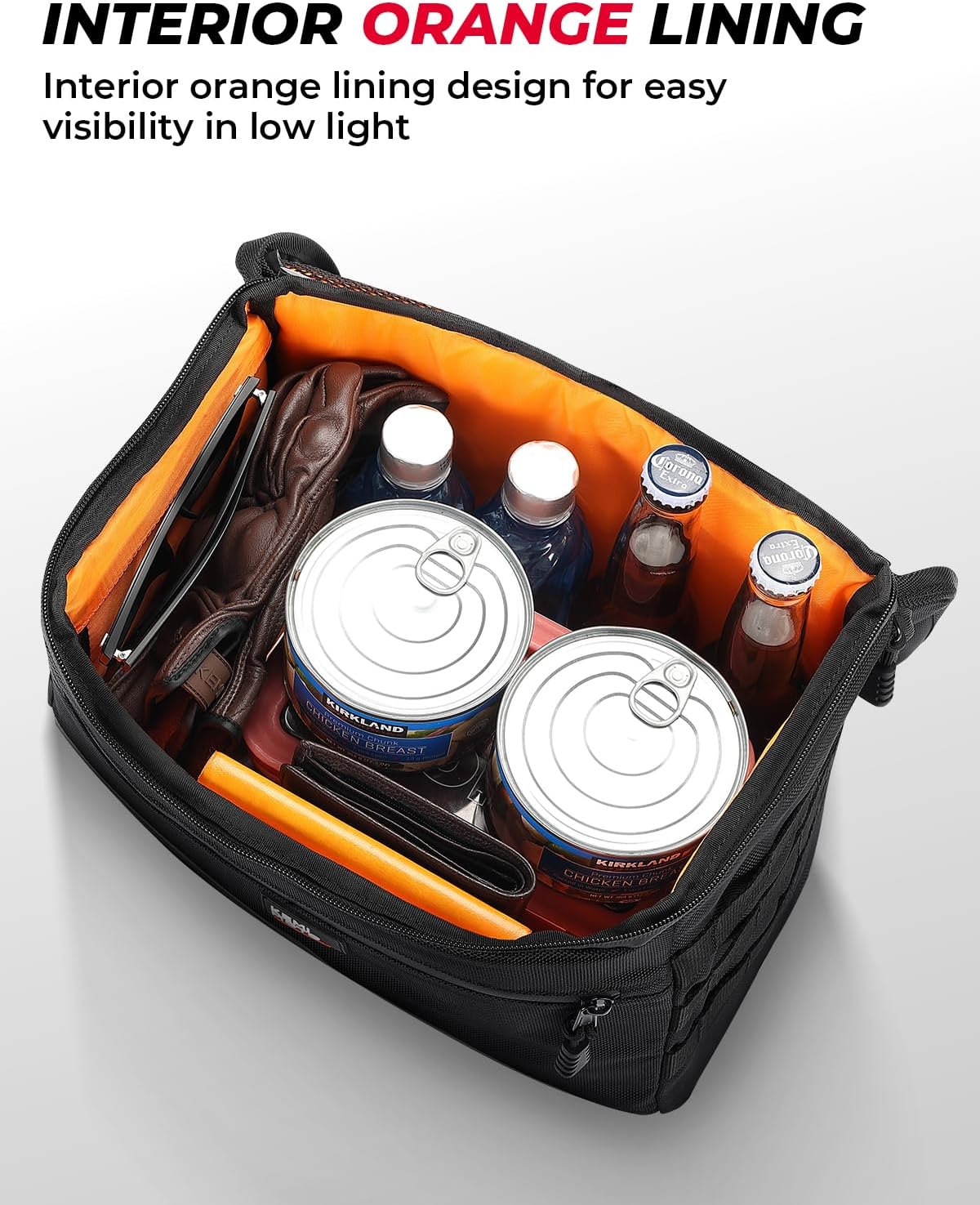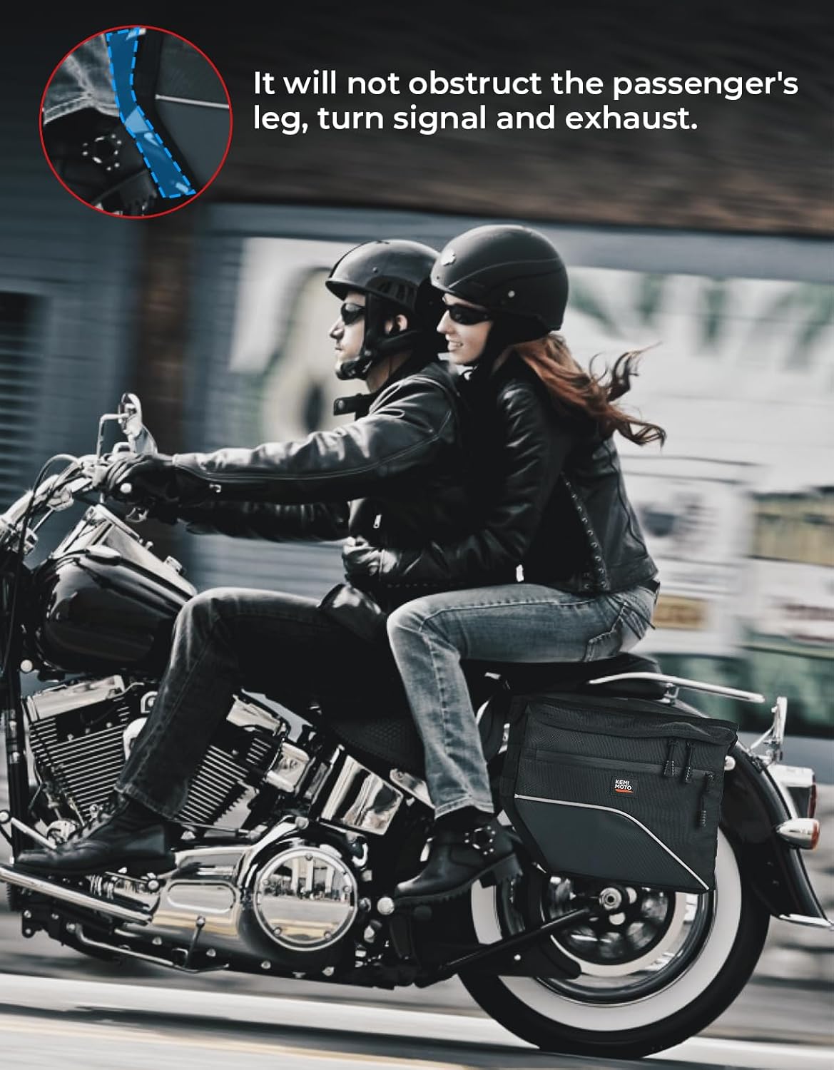 - Upgraded Design: Designed to fit most motorcycle models, this upgraded saddle bags motorcycles feature a waterproof zippered brim and orange inner liner for clearer visibility in low light areas. Additionally, it doesn't obstruct the passenger's leg, turn signal, or exhaust