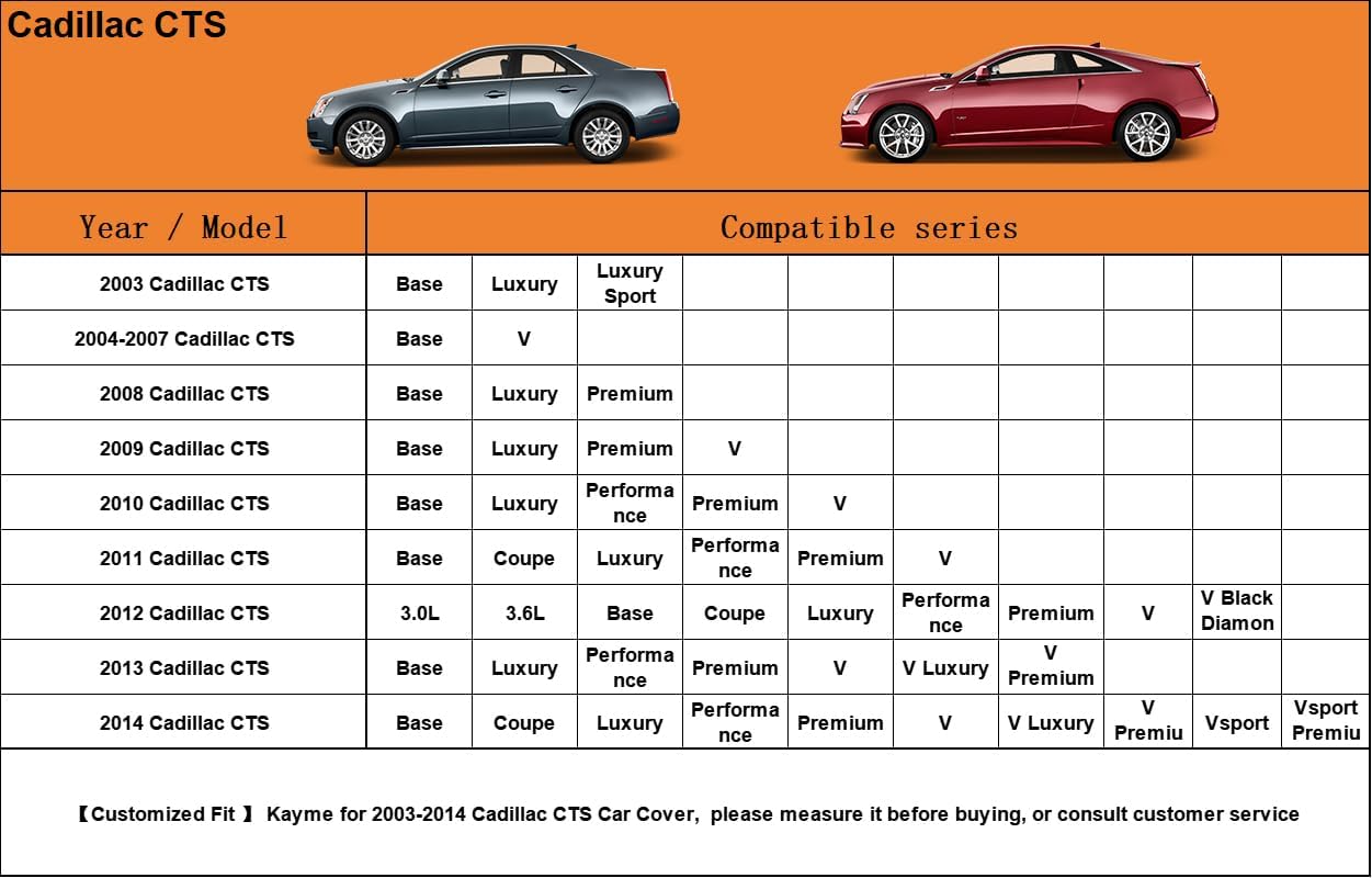 - ăSuitable forăâ Custom fit for Cadillac CTS (2003-2014) . Come with a large enough portable bag to store your cover when you do not use