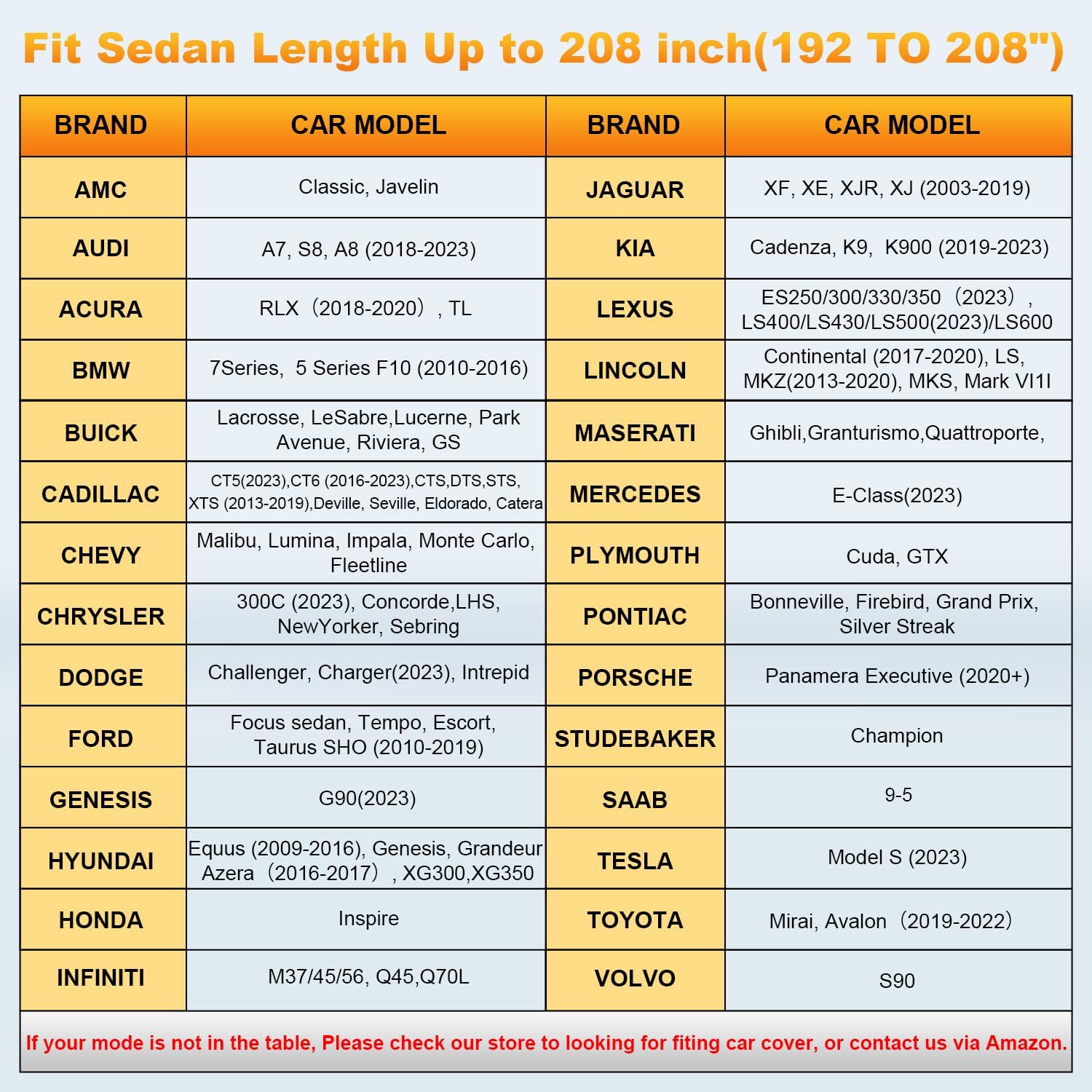 - Universal Fit for Sedan: Car cover SIZE: 530X200X150cm/208''x78''x60''inch, fit most sedan. Please Measure Your Car's Length First. Elastic pendulum and buckle can be adjusted freely. Come With A Large Enough Portable Storage Bag To Keep Your covertor para carro contra agua