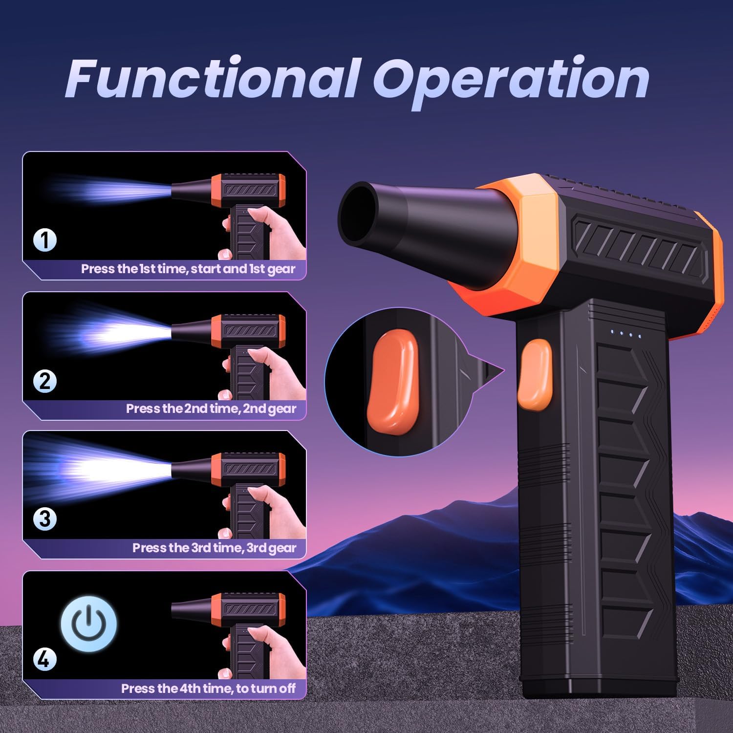 - 【Energy Efficient and Eco-Friendly】Compressed air duster Jet Fan can be used repeatedly by charging, which is more energy-saving and environmentally friendly than canned air compression. With a dust blower, you will be able to use it forever.