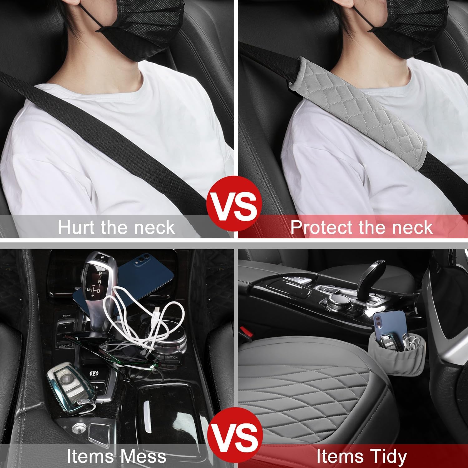 • Universal Size & Extra Accessories: 1 Pack Car seat cover is suitable for most cars. The car pocket organizer is compact and can be attached anywhere. It is perfect for storing small items such as phones, glasses, keys, change, and data cables. Seat belt cover, soft and comfortable, makes your driving experience very comfortable, perfect for cars, trucks, backpacks, luggage shoulder straps, etc.