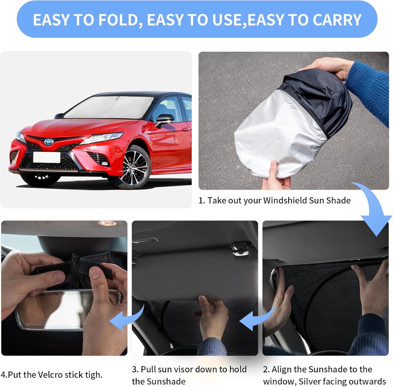 - ăYour Favorite Design ăThe front window shade easily pops out and folds back. Storage pouch is included for easy portability,Good gift for all friends.Great heat shield interior+accessories for your car.
