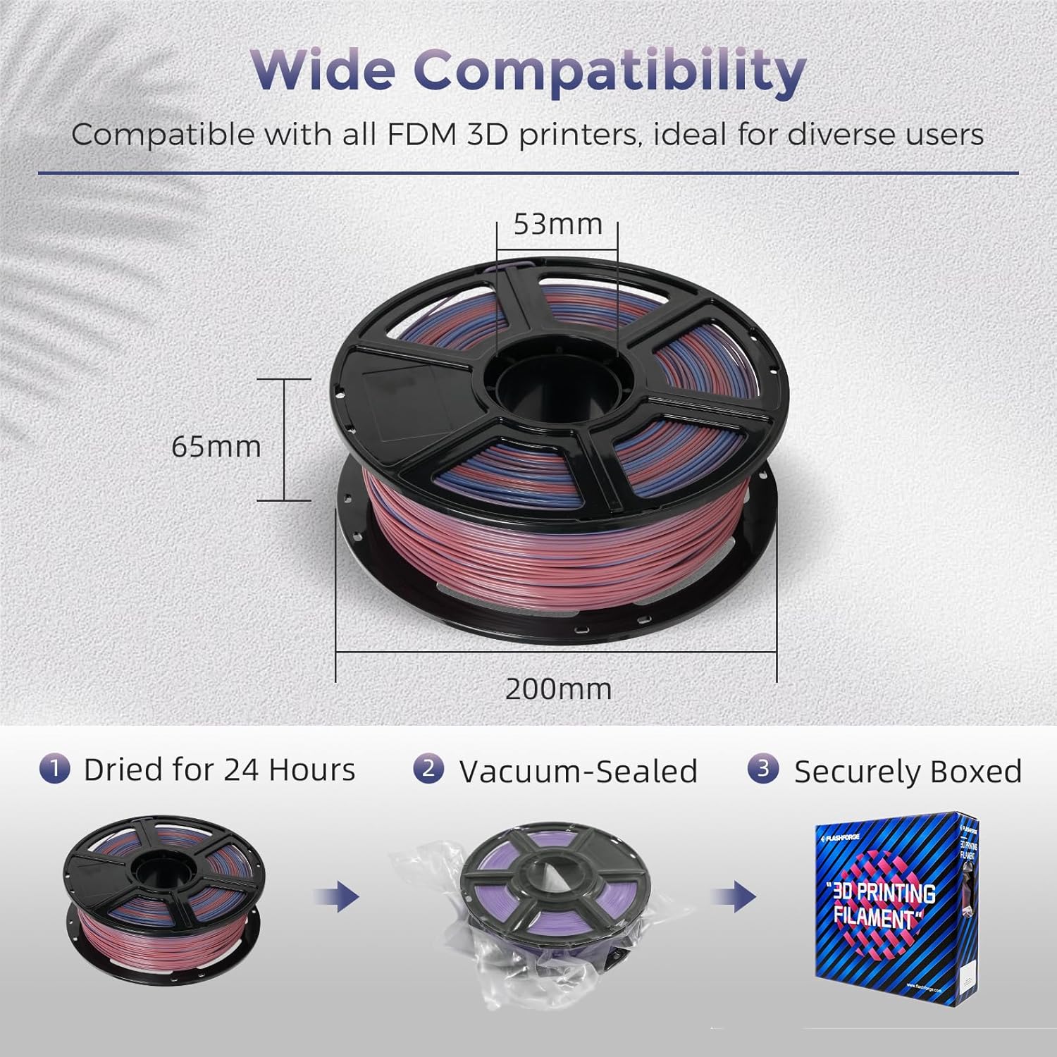 FLASHFORGE PLA Filament 1.75mm +/- 0.02mm Blue to Pink Gradient, Smooth Color-Changing 3D Printer Filament 1kg (2.2lbs) Spool, 3D Printing Filament Easy to Use and Fits for Most FDM 3D Printers