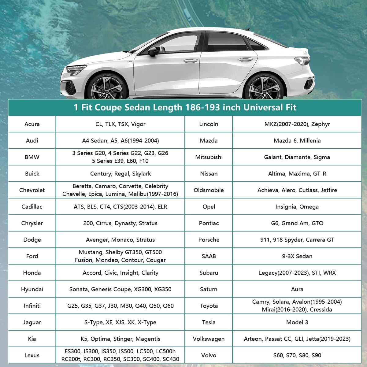 • 【Model Choice】GUNHYI automobiles cover is suitable for Coupe, Convertible, Length 186 to 193 inch (Not for SUV Hatchback). For exmaple--Chevrolet Chevy Camaro/Corvette, Ford Mustang/Shelby/Thunderbird, Toyota Camry, Honda Accord, Kia Optima, BMW 5 Series 525i, Cadillac Eldorado, Jaguar XJS/XK-Series, Mercedes-Benz C-Class/E-Class/SL-Class/SLS-Class, Lexus LC-Series/SC-Series, Bentley Continental, Mitsubishi 3000GT, Nissan GT-R etc.