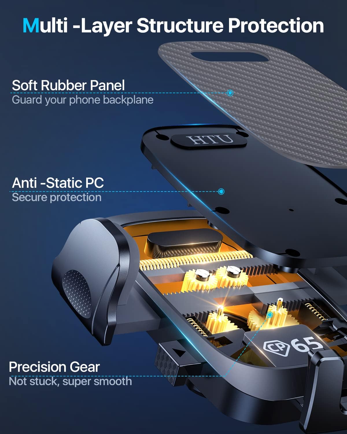 - [EXTRA ACCESSORIES INCLUDED]: Our phone holder for car comes with extra accessories to provide you with the experience. The package includes 1 HTU Exclusive Cable Manager, 1Sturdy Air Vent Clip, 1Strong Suction Cup Mount, 1Adjustable Phone Holder, 1User Manual, and 1Beautiful Packaging Box. With our car holder for cell phone, you'll have everything you need for safe and convenient phone use in your car.
