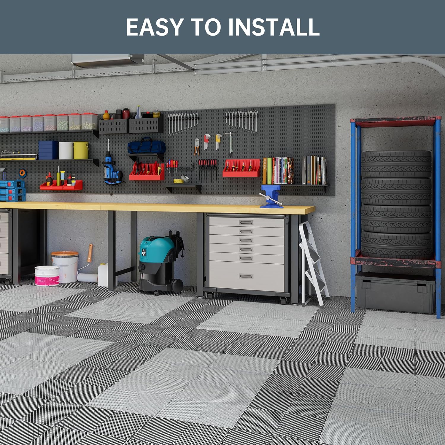 - 【Non-Slip Interlocking Floor Tiles】Our garage floor tiles are non-slip and add safety. They can support heavy loads such as SUVs, large pickups, and other large items.