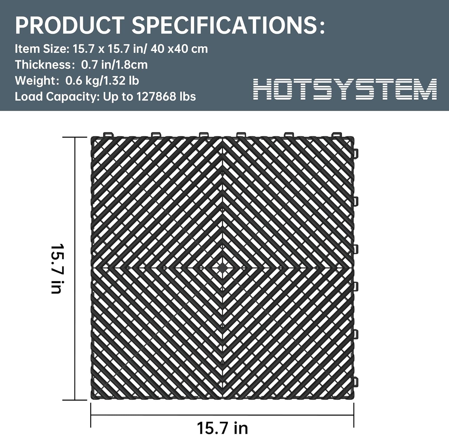 - 【Size】The size of our garage floor tiles are 15.7'' x 15.7'' x 0.7''(Thickness). The garage floor tiles are thicker than others,providing optimal protection against stains and giving your garage floor a new look.