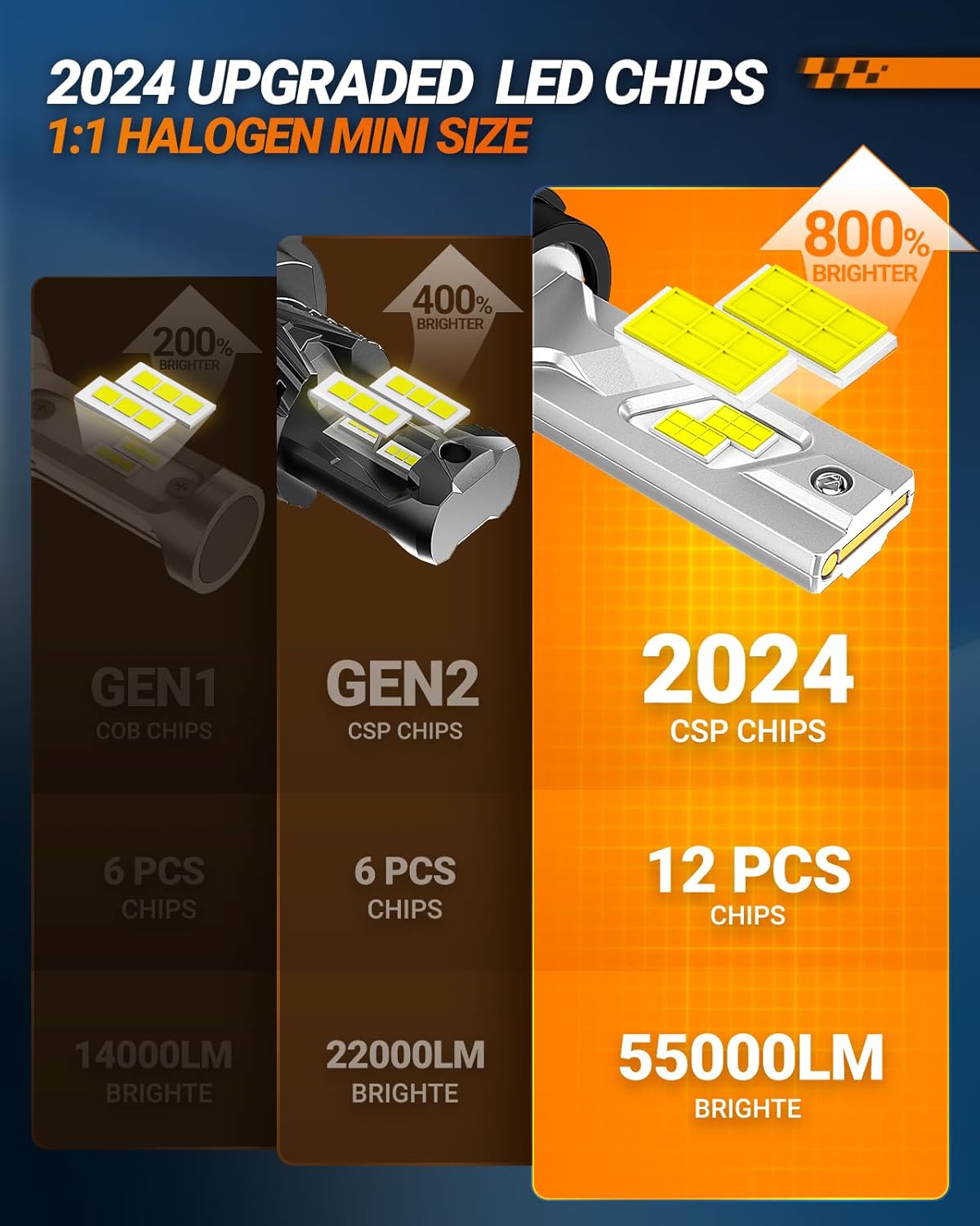 - Over 50,000 Hours Long Lifespan: The double cooling copper tube and 20,000 RPM cooling turbo fan helps speed down the core temperature, reached a perfect balance of long-lasting lighting and service life. No frequent bulb replacement troubled