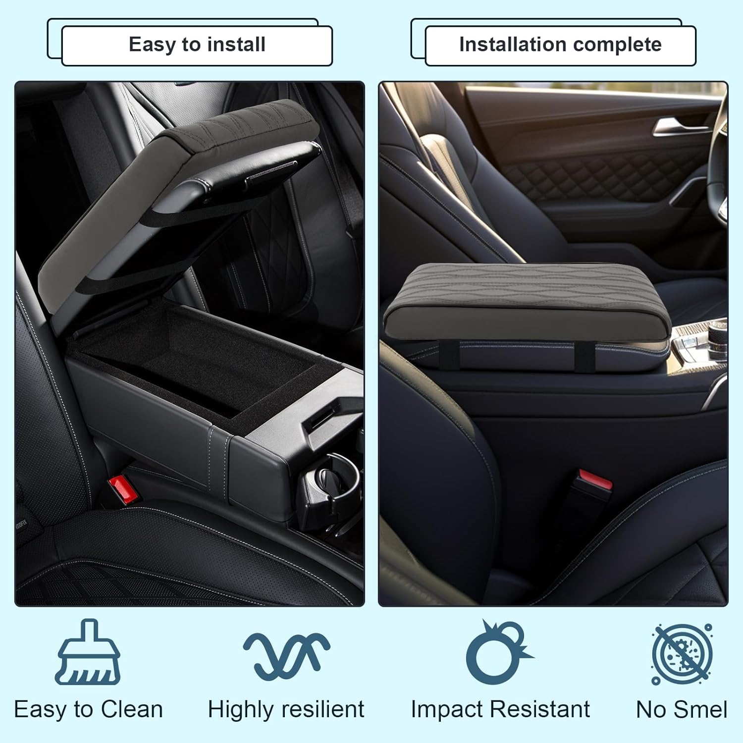 - Easy to Installation and Clean: No tools required for installation β simply slip it on for an instant upgrade to your vehicle armrest cushion. Waterproof armrest cushion is stain-resistant and easy to clean. Simply wipe away spills, dirt, and stains with a damp cloth, keeping your premium armrest cover looking brand new and ready for use