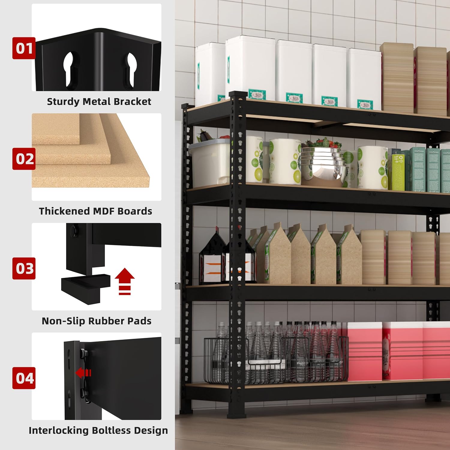 - - Endless versatility: The 4-tier shelves on this heavy-duty storage unit are adjustable, allowing you to customize the unit to fit the size and shape of any item you need to store. Itβs perfect for organizing your space, such as the garage, warehouse, basement, pantry, kitchen, living room, shed, laundry, closet, office, etc