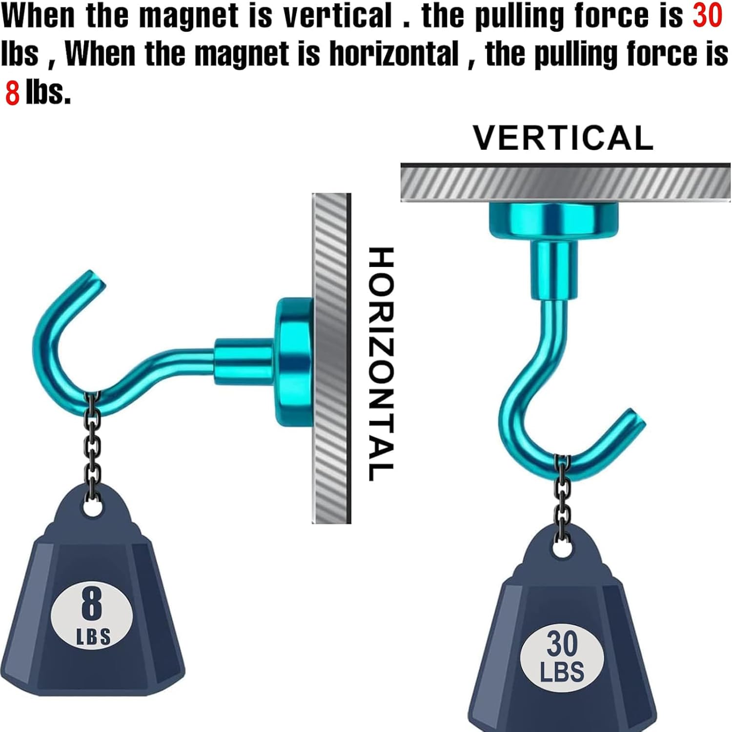 - 【Hanging Capacity】 Silver magnetic utility hooks are great for hanging accessories on the metal surface. They are able to sustain maximum weight up to 30 lbs on vertical hanging and the power reduced by 2/3 on horizontal hanging