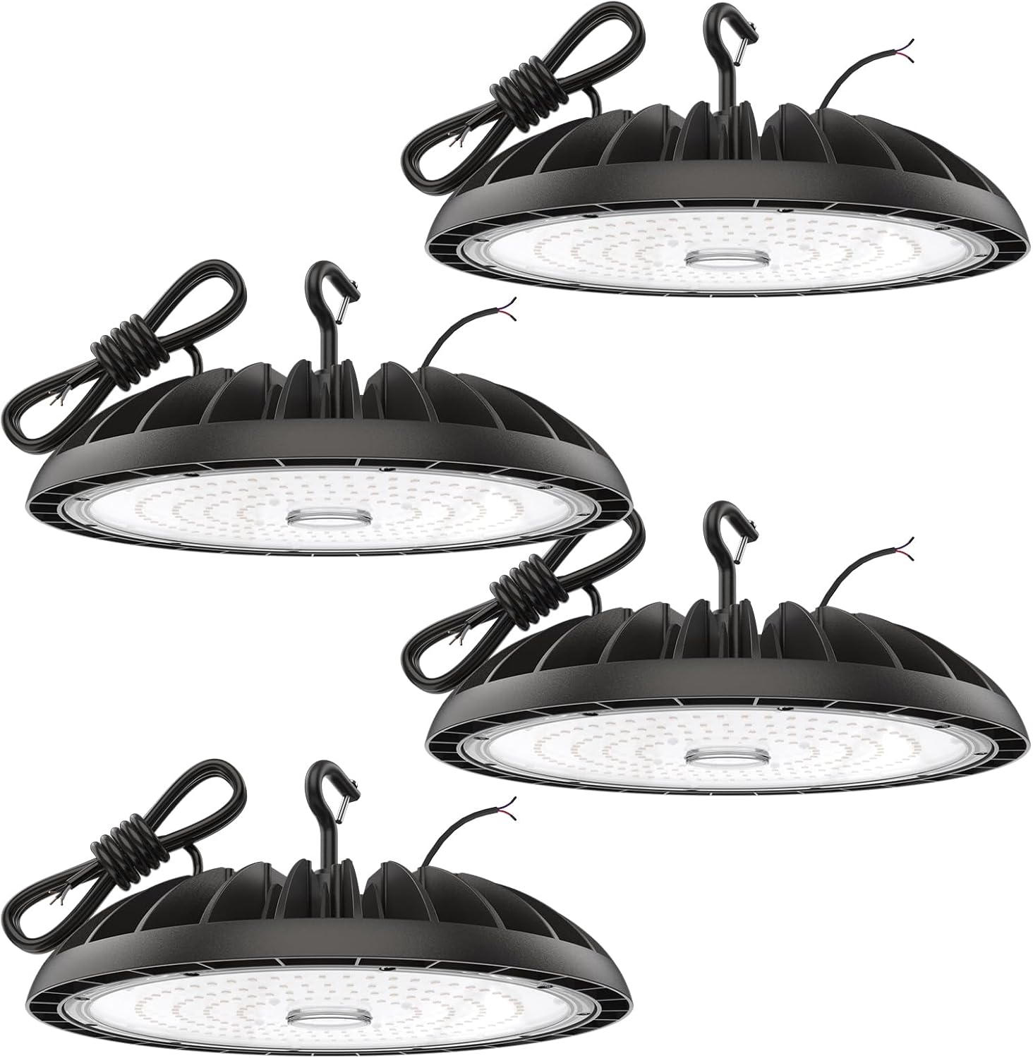 250W LED High Bay Lights - 4 Pack UFO High Bay Lights 37500 LM, 5000K Daylight, 0-10V Dimmable, IP65 Waterproof for Garage, Warehouse, Pole Barn, ETL Listed
