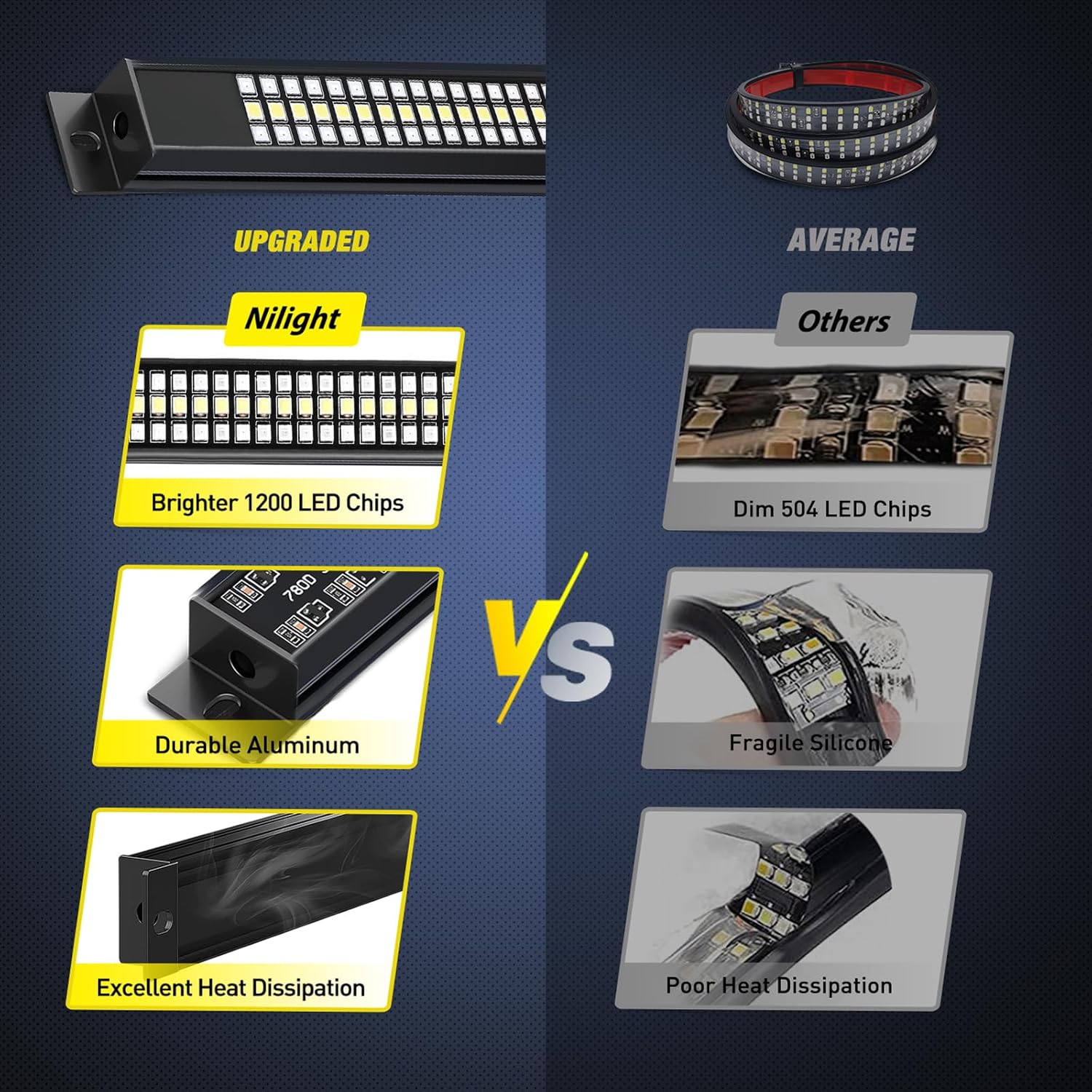 - Waterproof & Durable: Different from the PVC light strip, this aluminum frame tailgate light adopts IP65 epoxy waterproof technology, which has the characteristics of water resistance, chemical corrosion resistance and crystal clear, resist any harsh weather and environment. Outlasts with a lifespan over 50, 000 hours