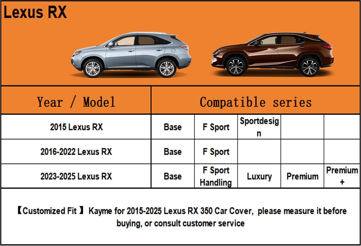 - ăSuitable forăâ Custom fit for Lexus RX350 /RX300/330/350L (2003-2025). Come with a large enough portable bag to store your cover when you do not use