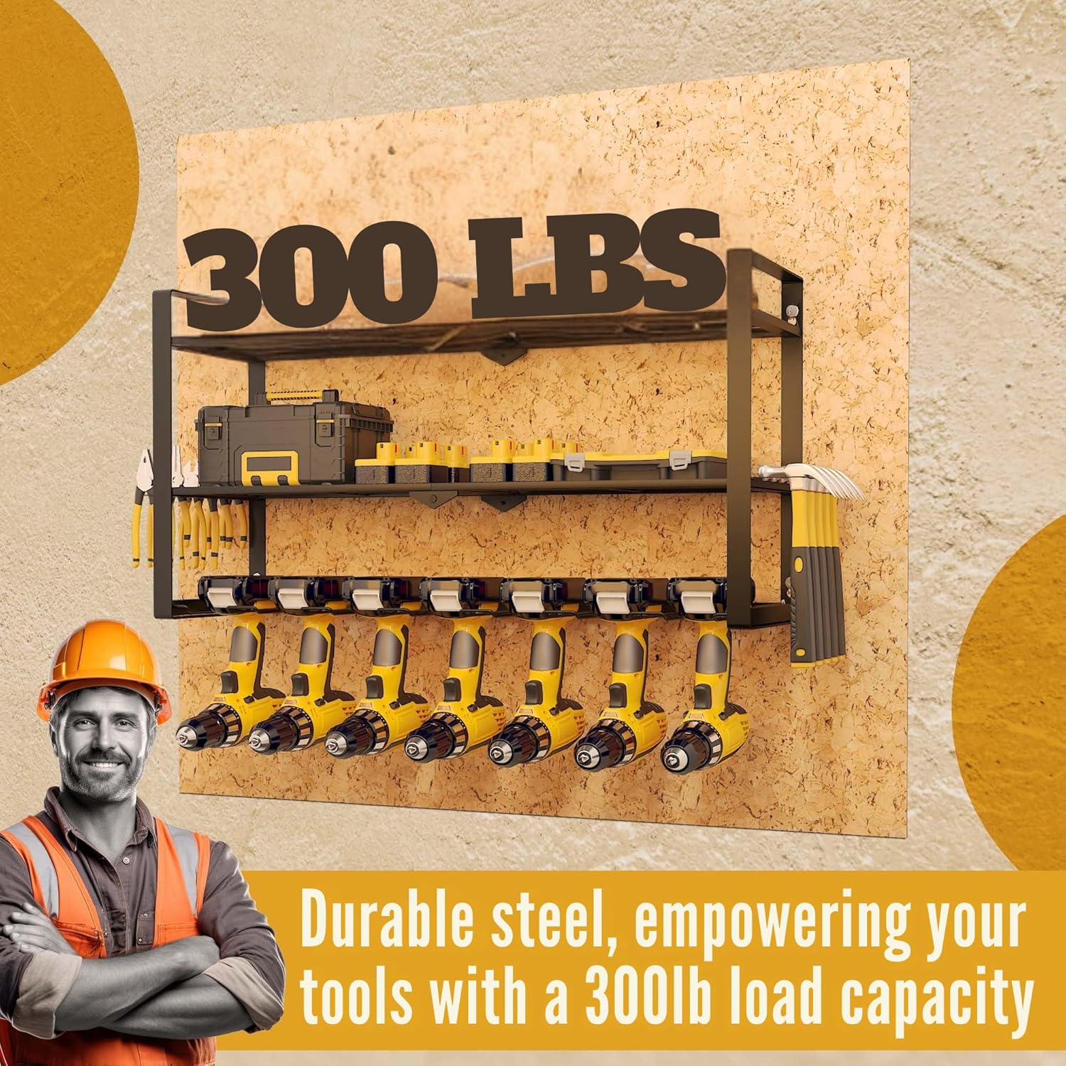 - šššššš ššš ššššššššš šššššš: Constructed from heavy-duty alloy steel, this Power Tool Storage Rack is built to last. It features superb welding that allows it to support up to 190 lbs, ensuring it remains reliable, eliminating any concerns about the rack detaching from the wall.