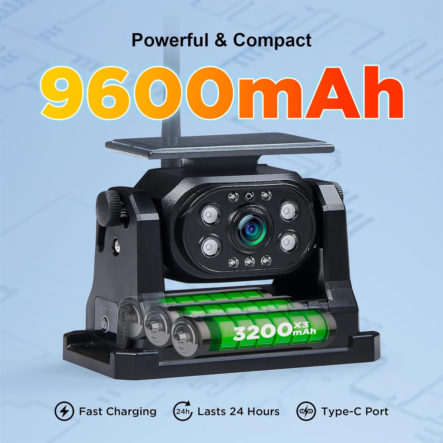 - Solar Panel: The solar panel can supplement some of the power on sunny days. This function extends the battery's usage time and lifespan, ensuring continuous operation of the wireless trailer camera for 24 hours. Enhance the convenience experience with seamless and sustainable power supply