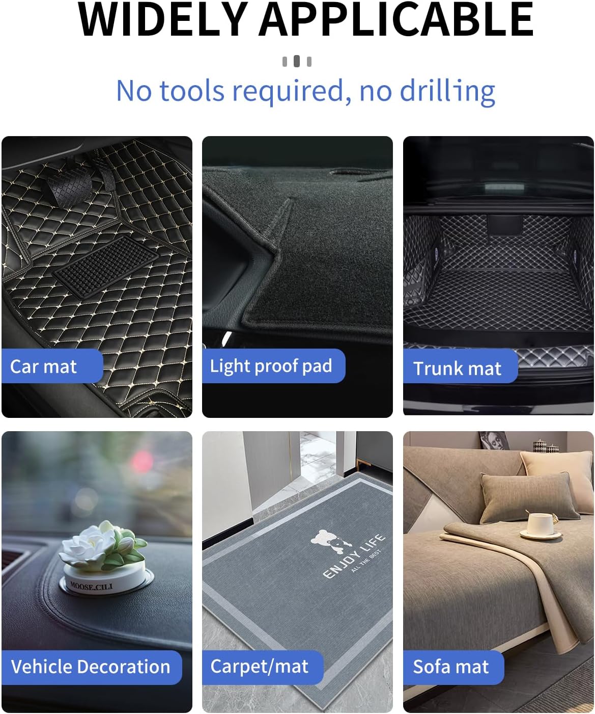- WIDE USAGE:Suitable for outdoor and indoor use. All kinds of temporary solution for mounting removable items, as hold couch cushions,rugs,car mats,curtains, remote controls,hanging photo frame, mounting crafts, organizing garage tools, power strip and organizing cables, led light,decorations,dry erase boards and more.Whether industrial use or daily use.Make your life easier.