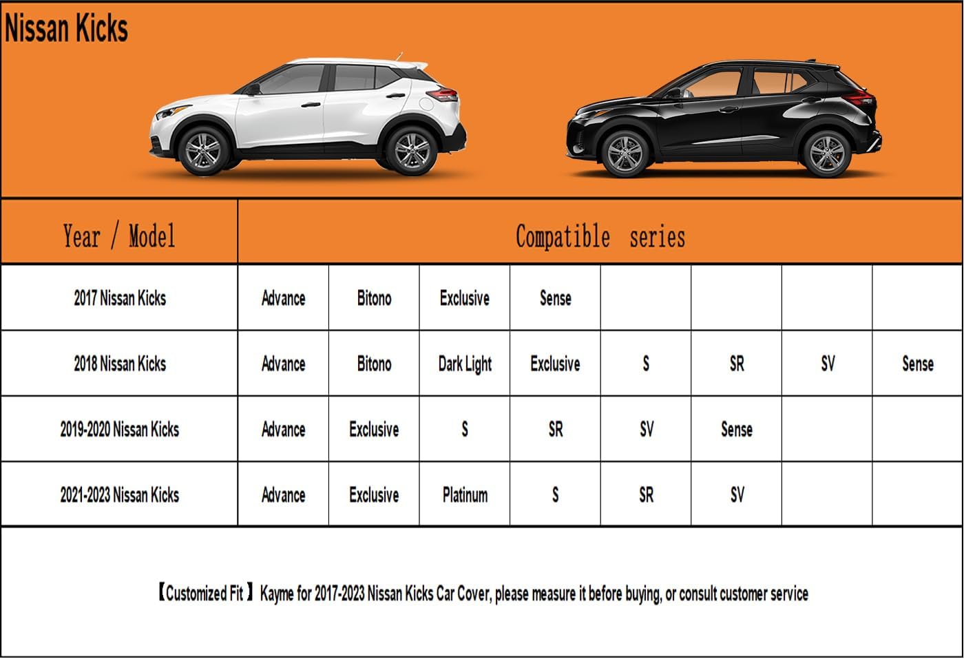 - ăSuitable forăâ Custom fit for Nissan Kicks (2017-2025). Come with a large enough portable bag to store your cover when you do not use