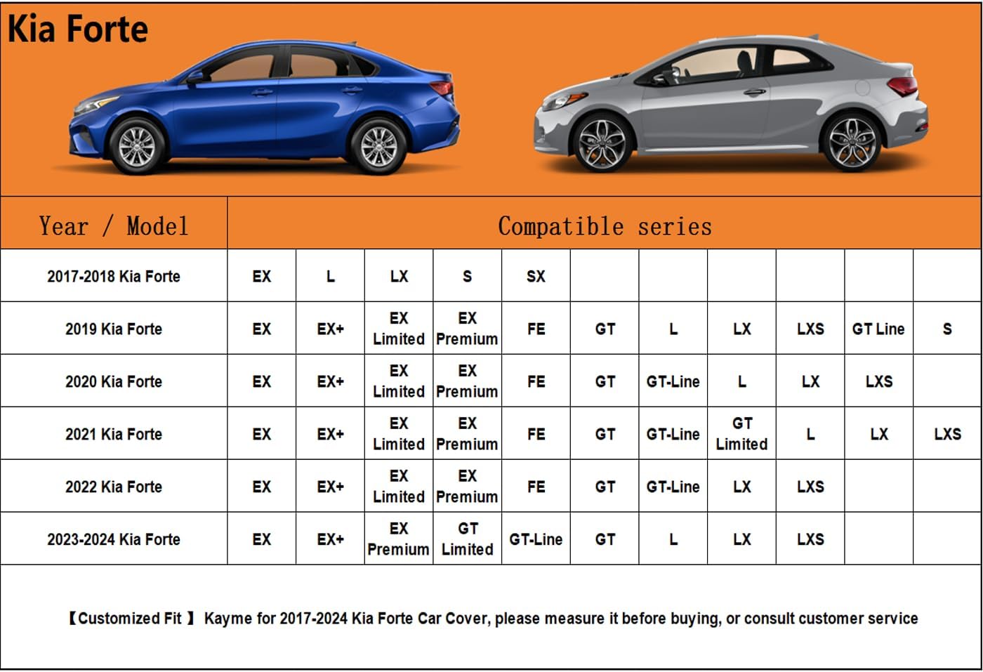 - ăSuitable forăâ Custom fit for Kia Forte (2017-2025). Come with a large enough portable bag to store your cover when you do not use