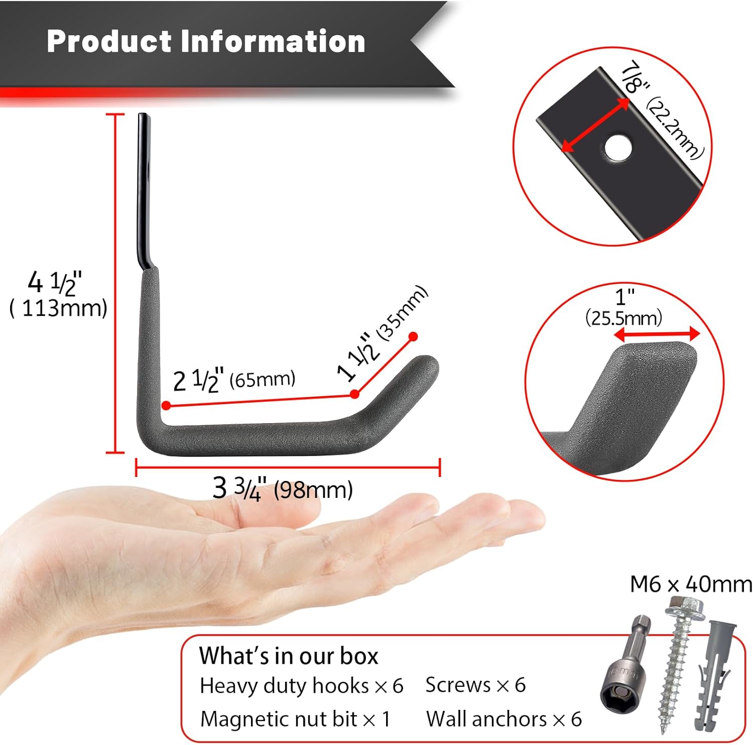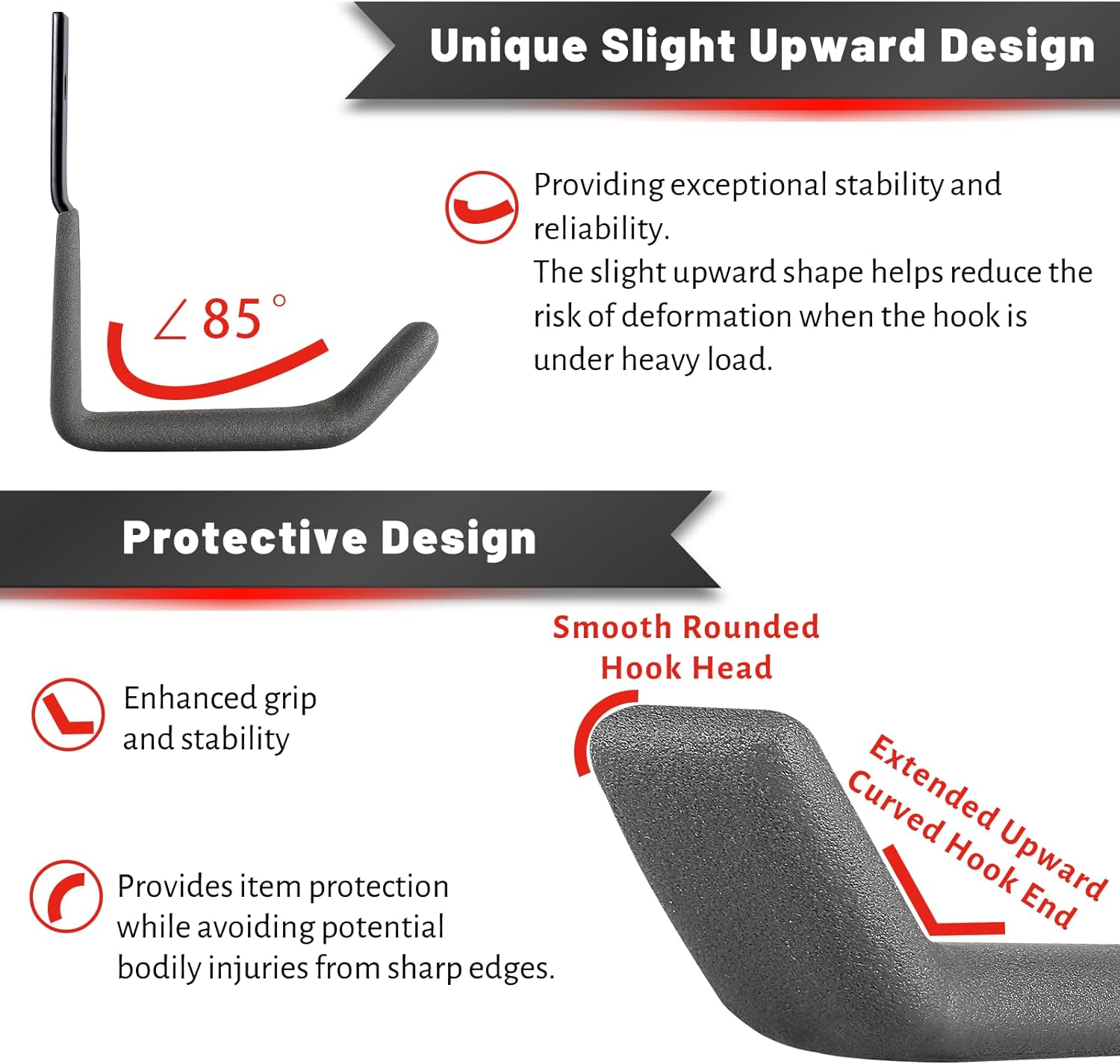- ▶ STURDY & SECURE: The garage storage hooks are constructed from solid carbon steel. Its modern industrial J-shape design and seamless one-piece molding ensure both strength and safety. This heavy duty hooks have a safe working load of 50 lbs (22 kg).