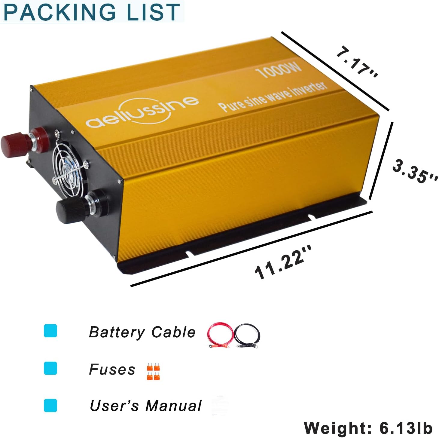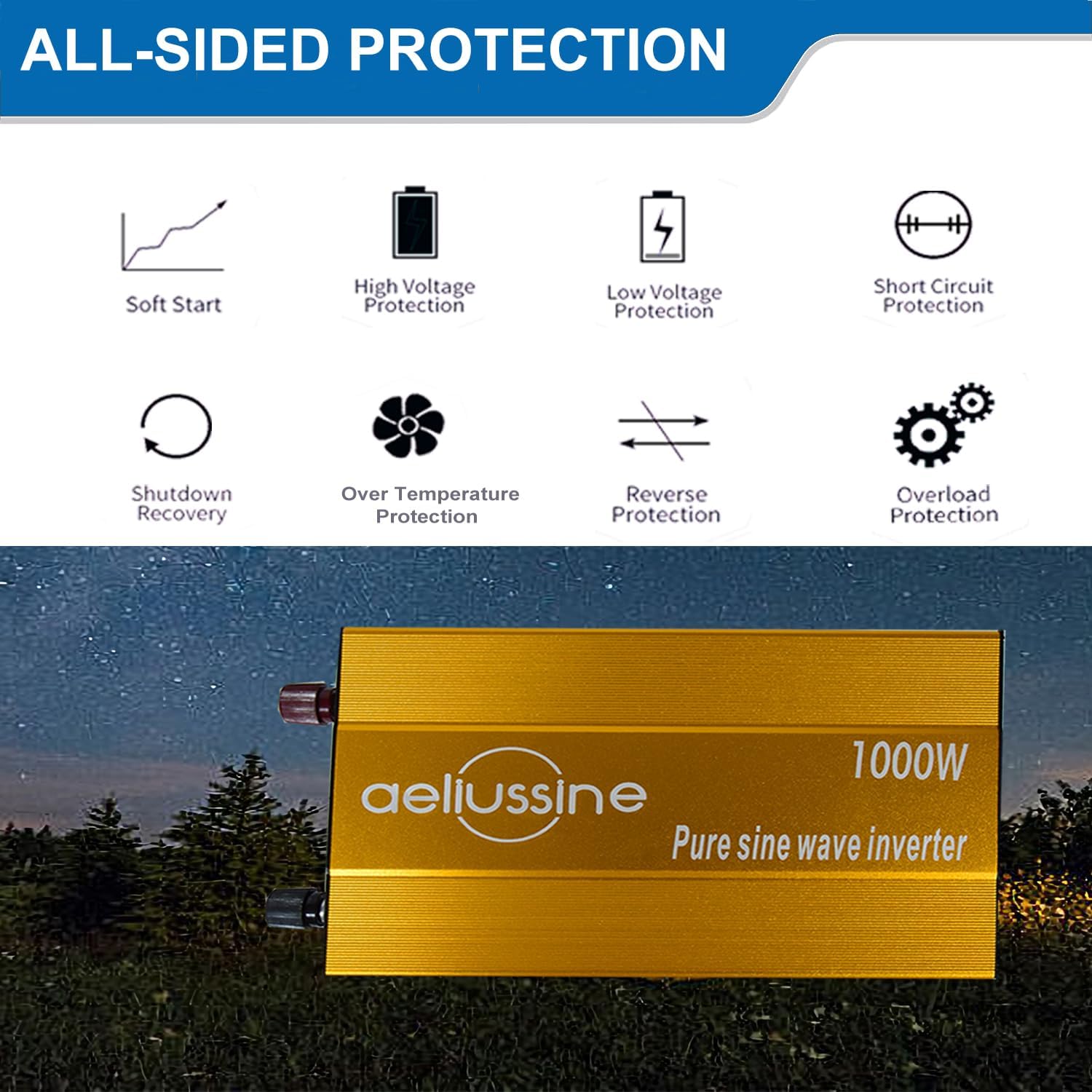 • 【Fully Safety Protections】The pure sine wave inverter has high efficiency and stable performance. It has sound protections including overload protection,over current protection, short circuit protection, battery reverse connection protection, high temperature protection, high or low battery input protection, built-in fuse protection.