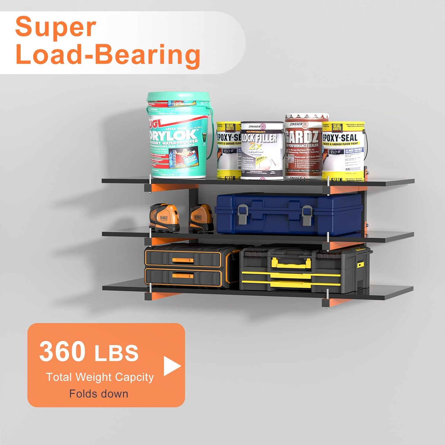 - 360 LBS WEIGHT CAPACITY: Wall-mounted wood storage rack feature a more supportive triangular design, each shelf can hold up to 120 lbs, the 2-pack wood rack organizer can hold up to 360 lbs, and the 4-pack wood storage system can hold up to 720 lbs. So you can store all your heavy and bulky items, these metal rack organizer units are roomy enough for your everyday needs